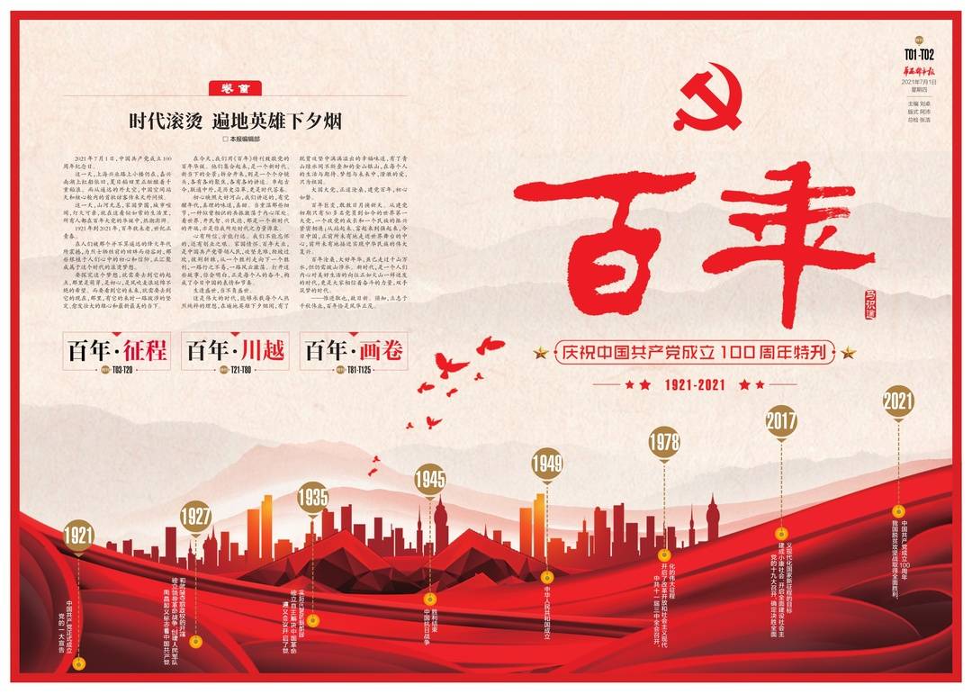 丹青书盛世,翰墨颂党恩。华西都市报隆重推出超100个版的“百年特刊”,庆祝中国共产党成立100周年。每一个版都由不同字形的“百年”作为刊头,仿佛同声高唱的一首赞歌。
