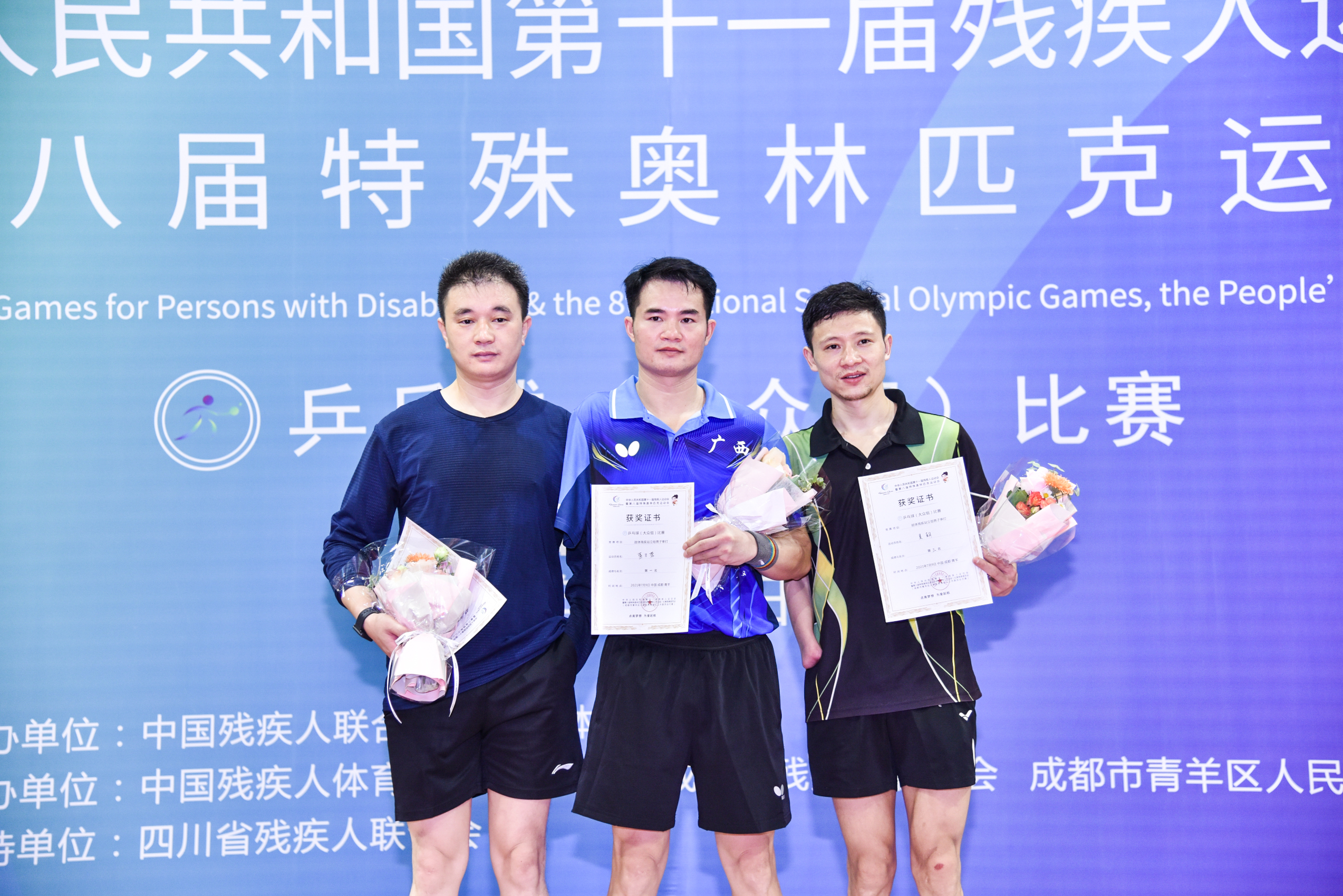 齐明明(河南)、曹恒(陕西)、杨俊懿(河北)获得肢体残疾轮椅组男子单打前三名,滕桂红(北京)、韦旭华(上海)、刘为(北京)获得肢体残疾轮椅组女子单打前三名;蓝日荣(广西)、谭显胜(宁夏)、夏朝(宁夏)获得肢体残疾站立组男子单打前三名,鄢俊(河南)、李佳芮(河南)、刘旭(山东)获得肢体残疾站立组女子单打前三名; 杨洋(吉林)、何晓东(重庆)、李柳民(广西)获得听力残疾组男子单打前三名,张连萍(上海)、李春蕾(江苏)、常星宇(河北)获得听力残疾组女子单打前三名。