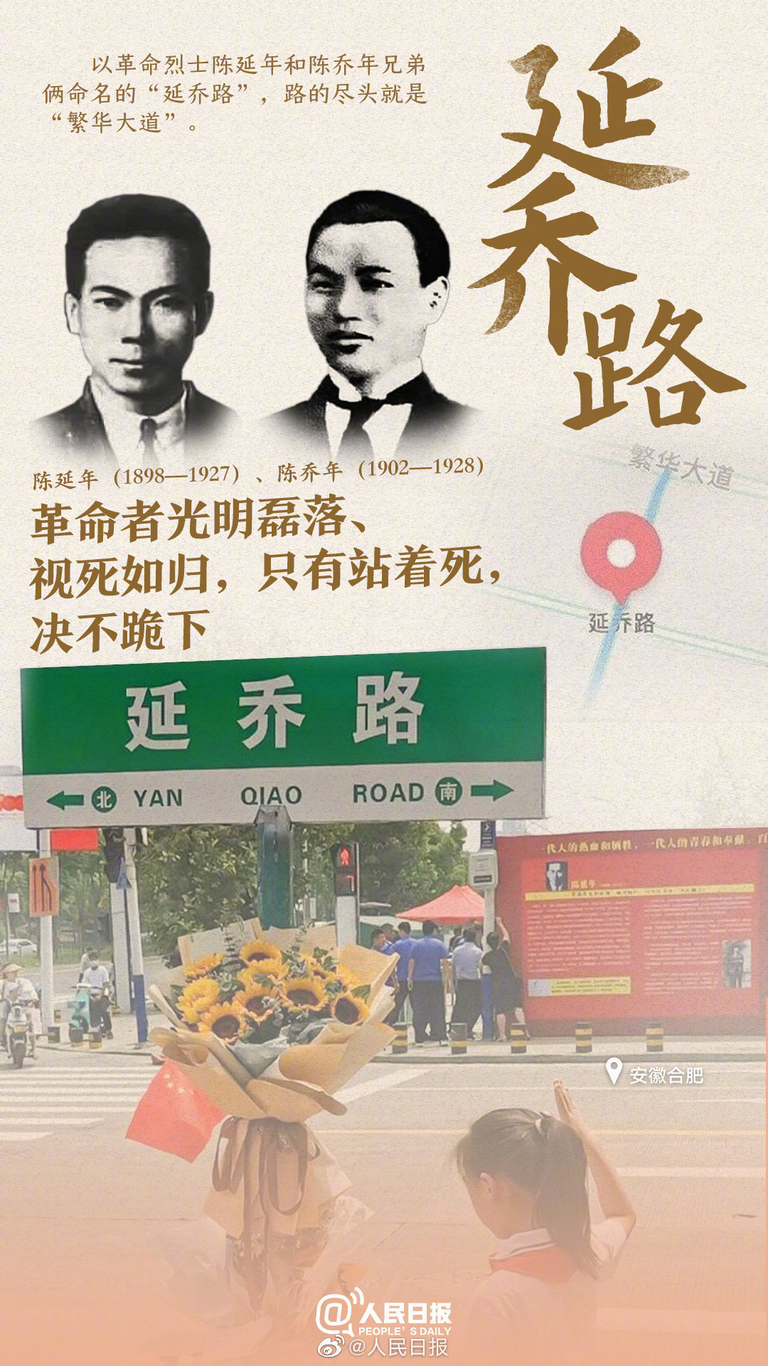 近来,延乔路让无数网友动容。全国还有许多以先烈之名命名的道路广场,交汇富强街的大钊路,连着复兴街的蔡和森大道,还有一曼街,靖宇路......英烈之名成为奋进的路标,穿越历史,辉映未来。你的家乡有哪些以先烈命名的路?英雄从未走远,我辈继续前行!
