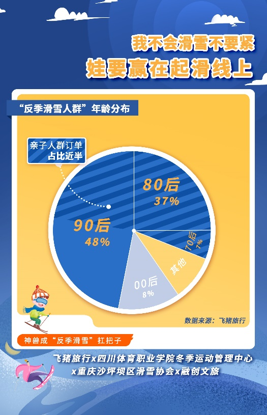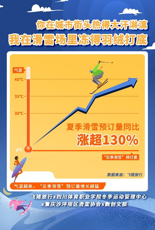 融创文旅集团冰雪中心总经理伊力介绍,今夏滑雪市场异常火爆,重庆、成都、无锡等多个南方城市的滑雪票预订量环比上月增长五成左右。以重庆融创雪世界为例,夏季滑雪票预订量甚至反超冬季。夏季滑雪客群与传统冬季客群不同的是省外游客占比大幅提升,毕业游、暑期亲子游需求将得到集中释放。飞猪平台上的订单来看,滑雪游客以年轻人和年轻家庭为主。