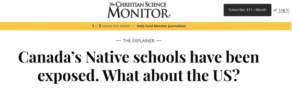 连美国媒体也看不过去了,7月6日,美国《基督教科学箴言报》网站发出一篇文章《加拿大原住民学校曝光,那么美国呢?》,称美国也曾有一个类似的加拿大原住民寄宿学校,是规模更大的机构网络,名为“印第安人工业学校”。