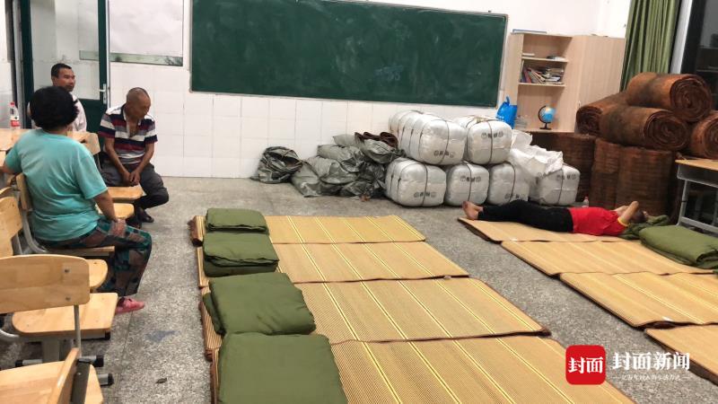 晚上9点,九龙镇清泉村集中安置点灯火通明,镇、村干部在房间忙着铺设棉被、凉席等,尽可能给群众提供舒适的居住环境。