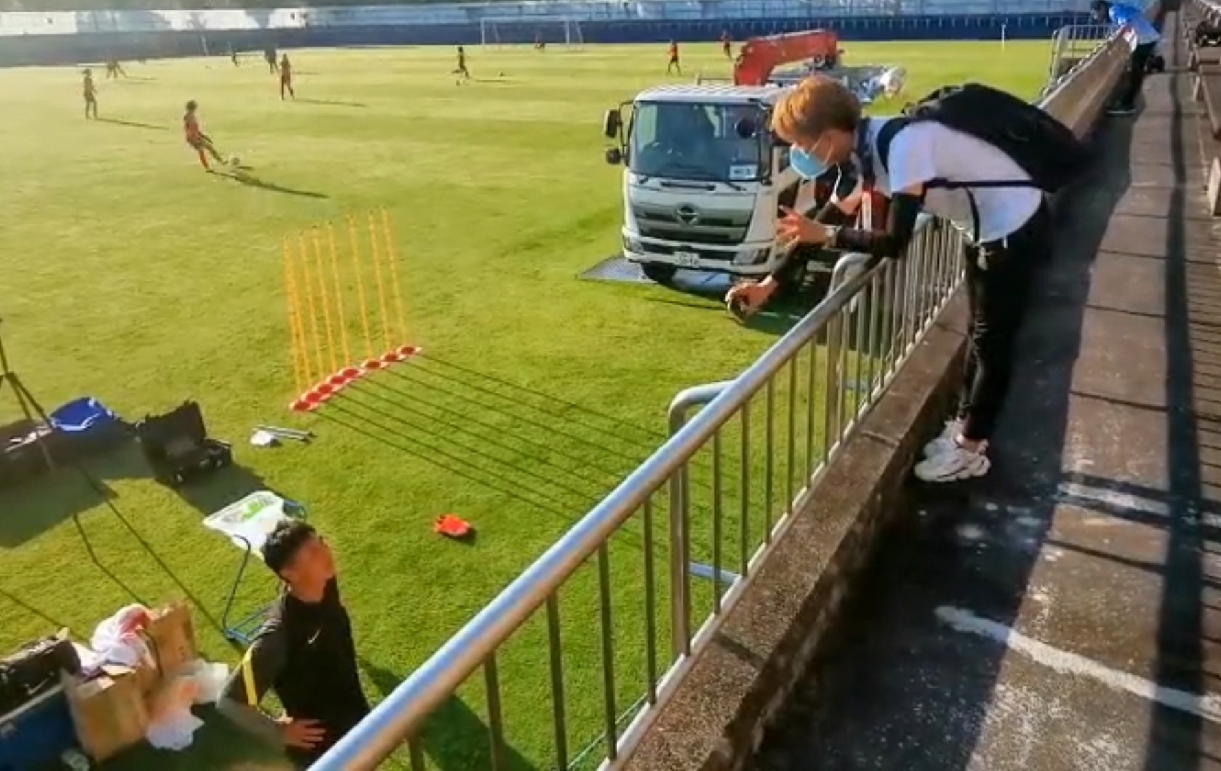 警察一直在拒绝记者进场,原因是怕不安全。经过多方沟通后,日本足协工作人员在要求记者出示证件、测量体温、进行手部消毒后,允许我们进入看台观看,时间15分钟。