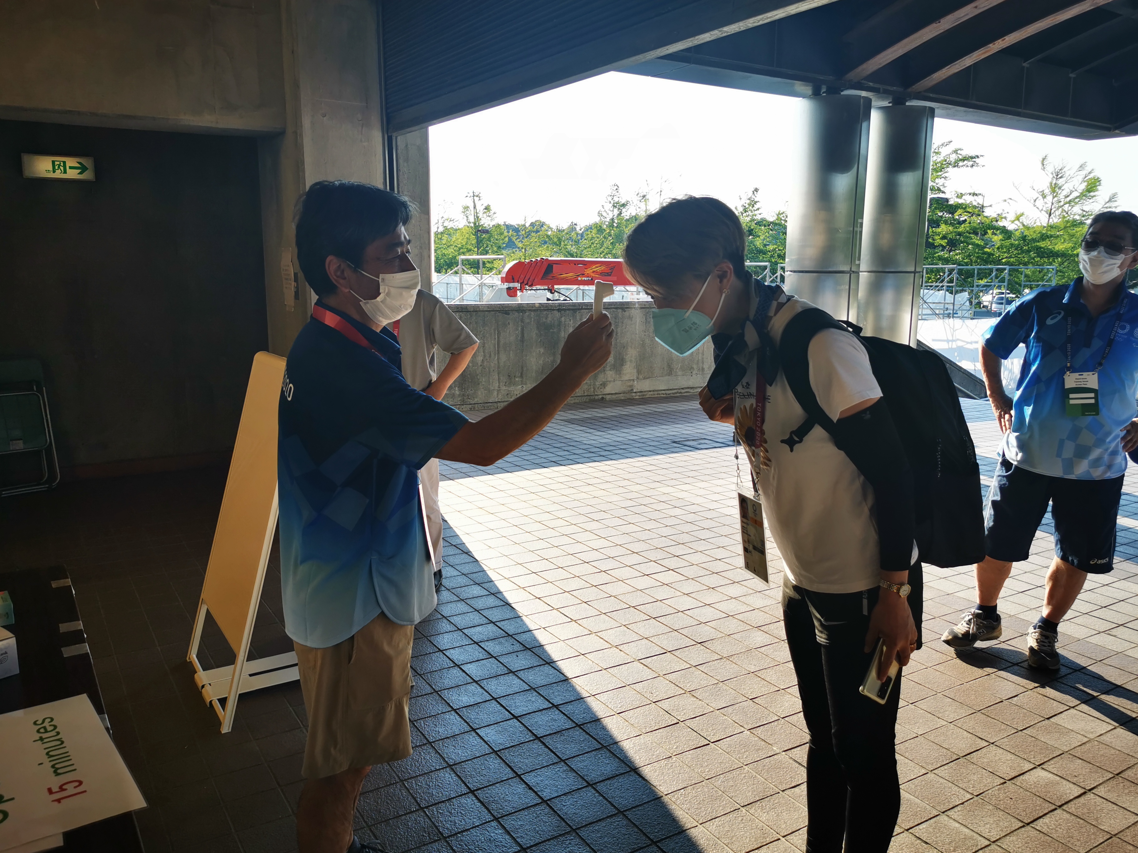7月19日,记者进入训练场前接受了严格防疫检查。