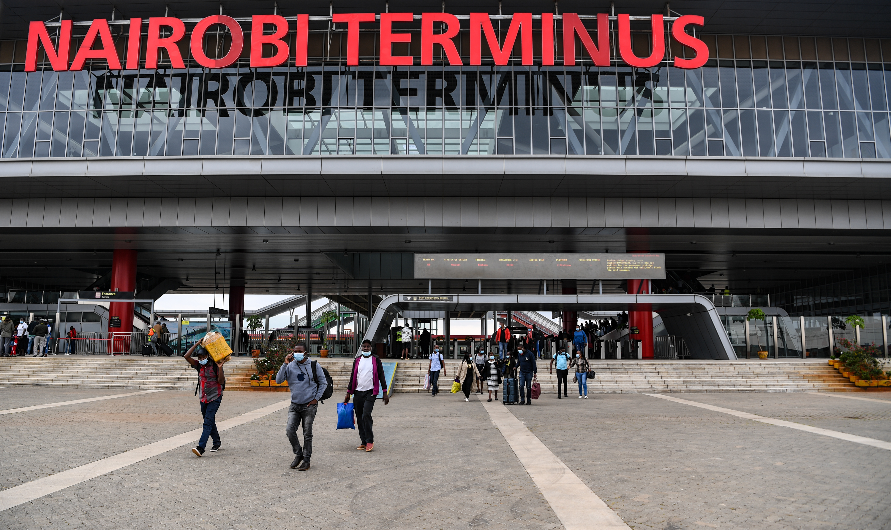 乘客走出肯尼亚内罗毕站。新华社记者李琰摄