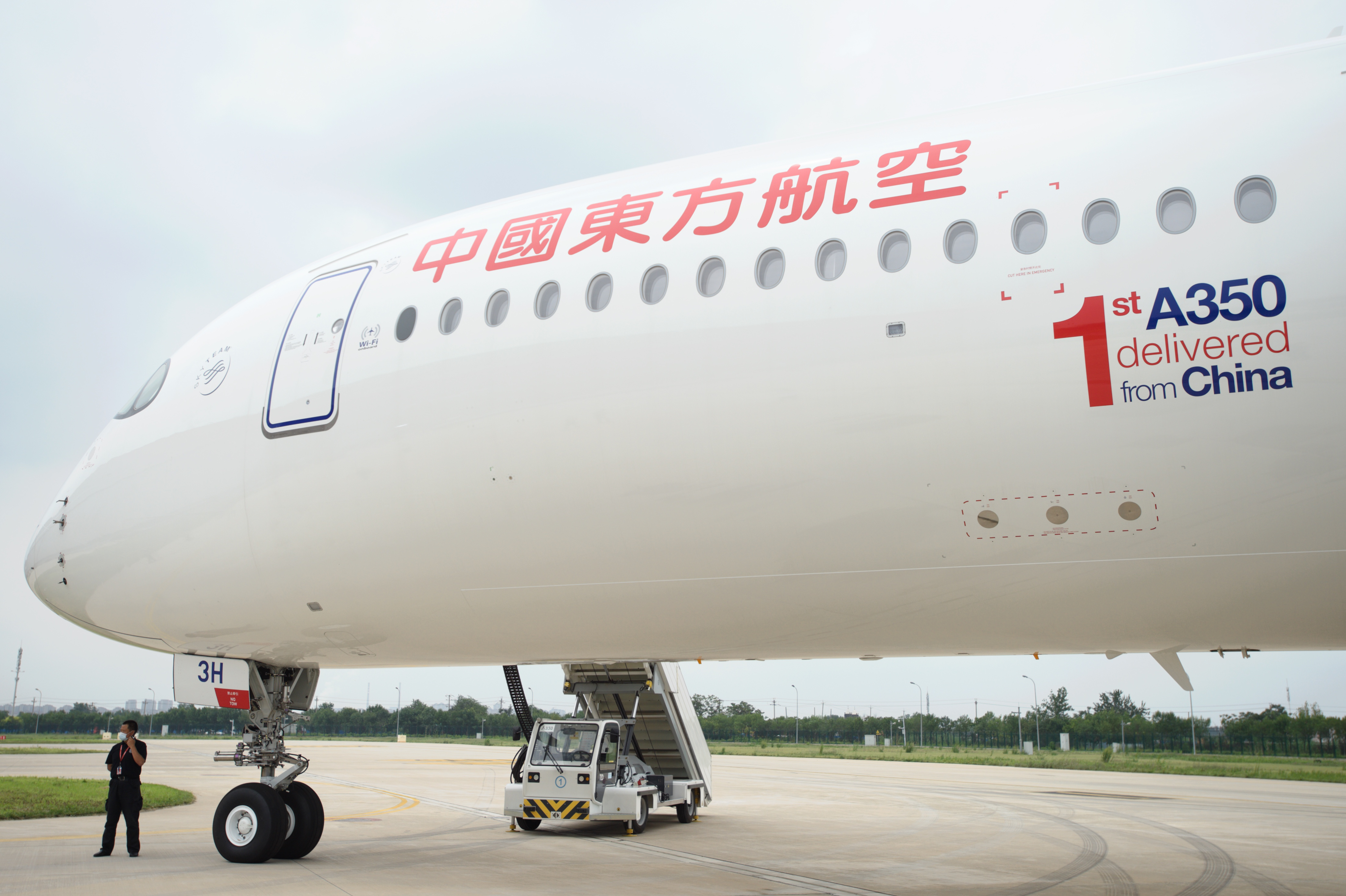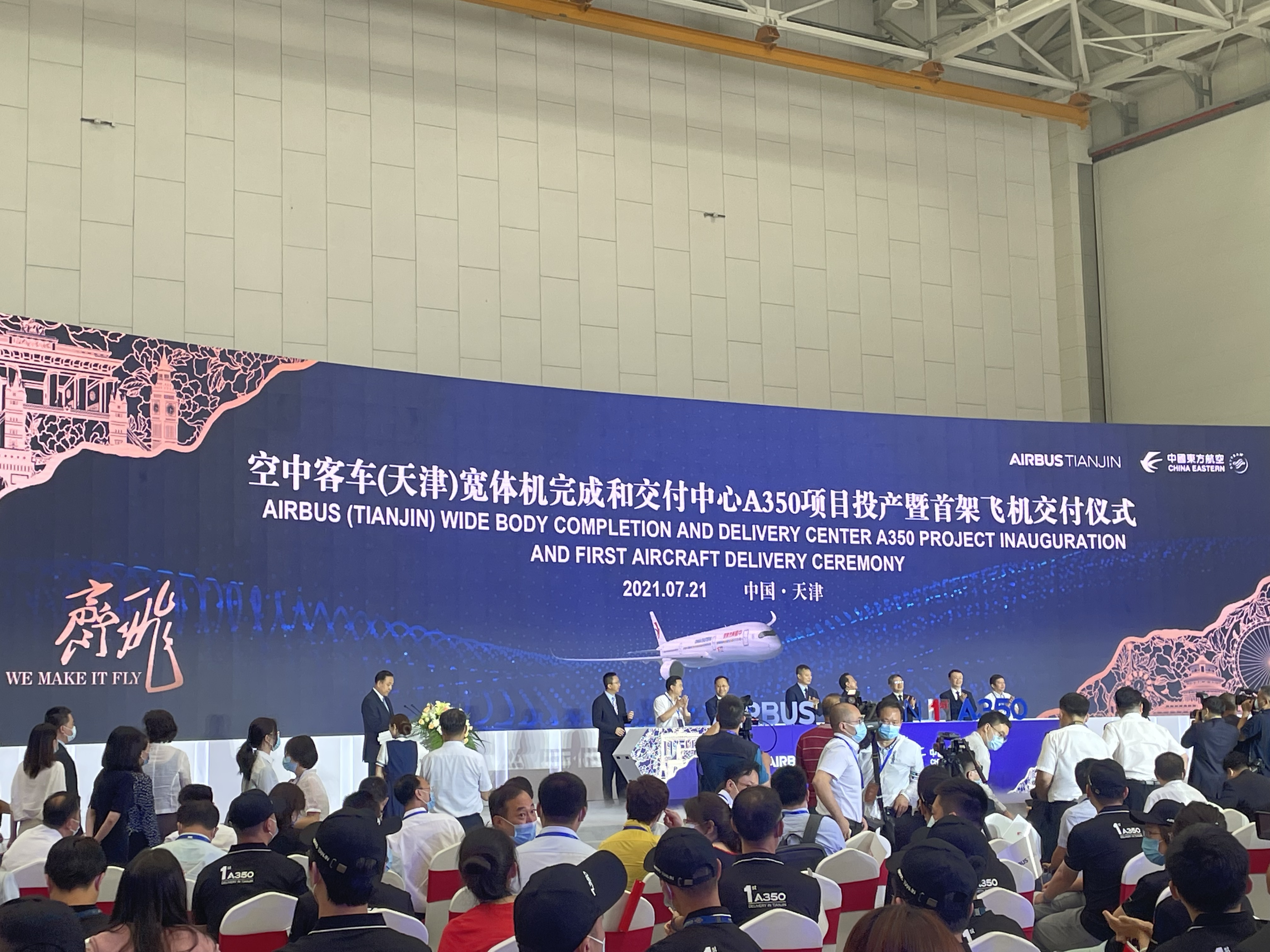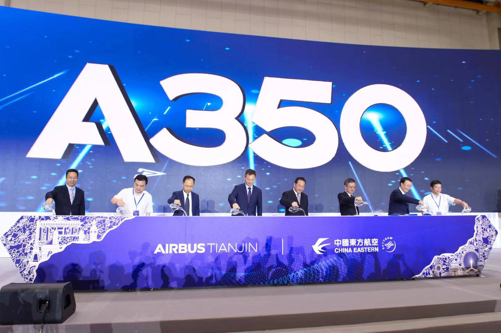 这是中国东方航空股份有限公司(简称"东航")首次在天津接收空客交付的A350-900飞机。同时也是空客天津宽体飞机完成和交付中心向用户交付的第一架A350飞机。