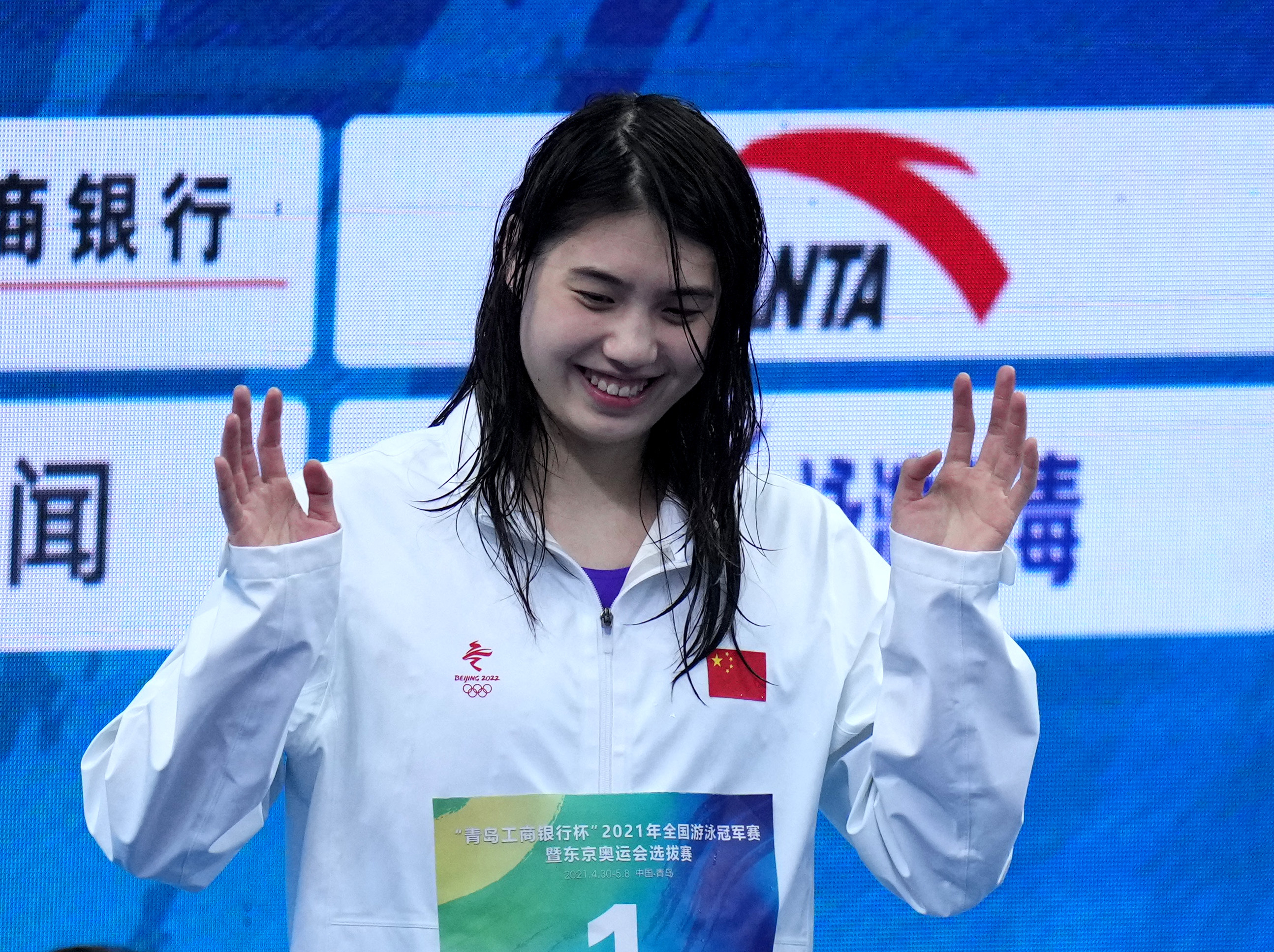 资料图:5月8日,张雨霏在颁奖仪式上。新华社记者 许畅 摄
