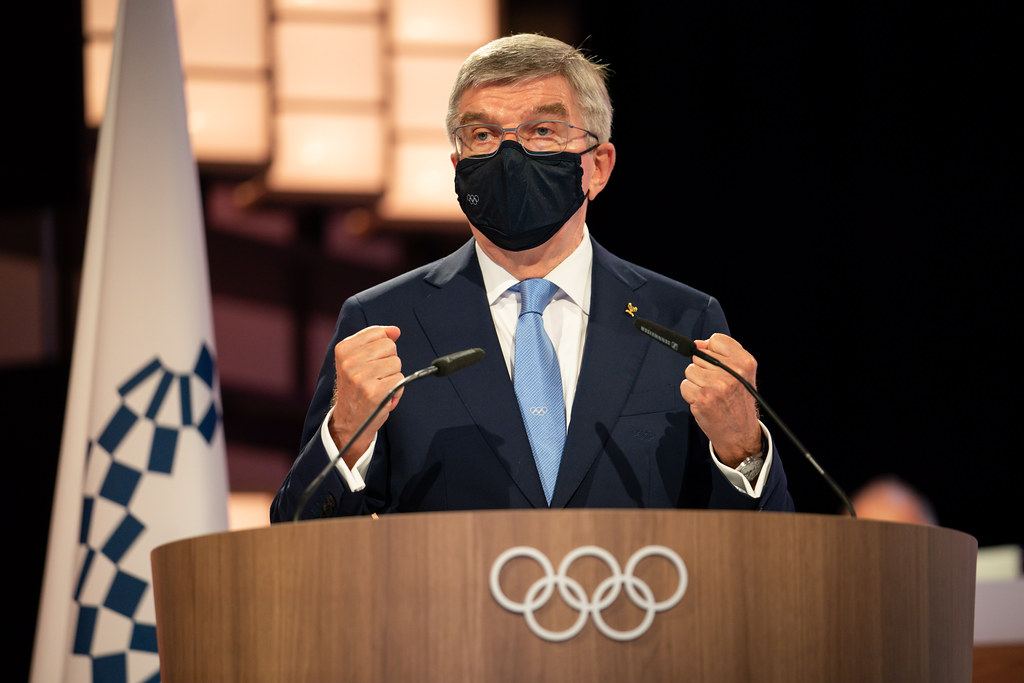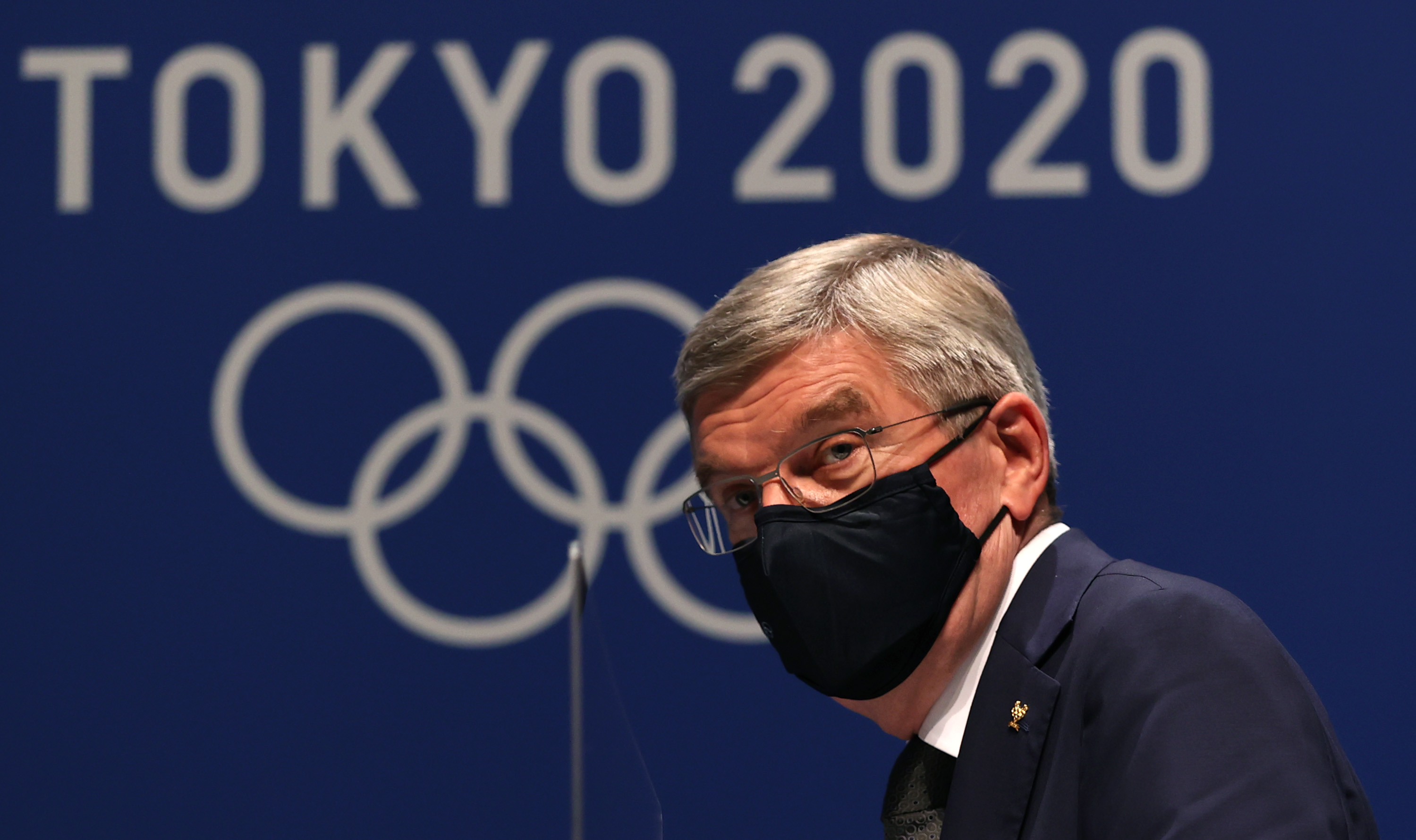 7月21日,国际奥委会主席巴赫在新闻发布会上。新华社记者贾浩成摄