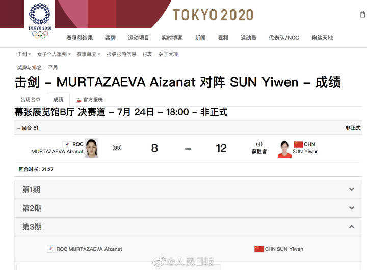 东京奥运会女子个人重剑半决赛孙一文以12-8击败俄罗斯奥委会运动员穆尔塔扎耶娃,闯进了决赛!决赛将在北京时间19时45分进行,对手是另一场半决赛爱沙尼亚和罗马尼亚选手之间的胜者。