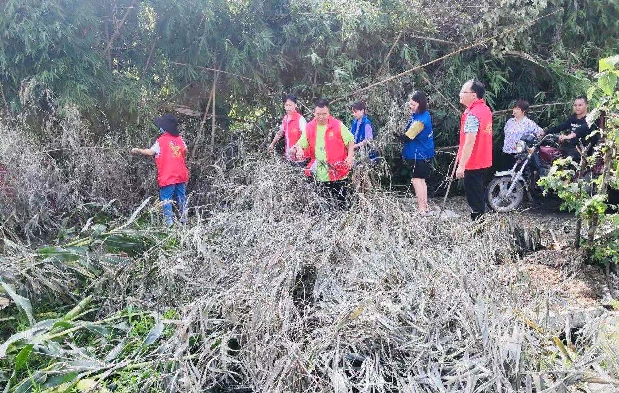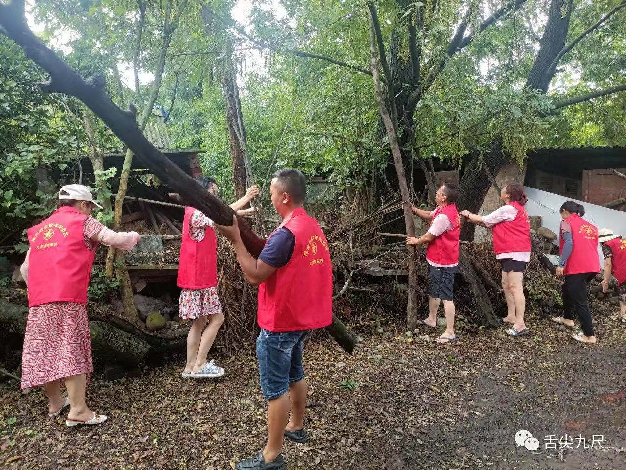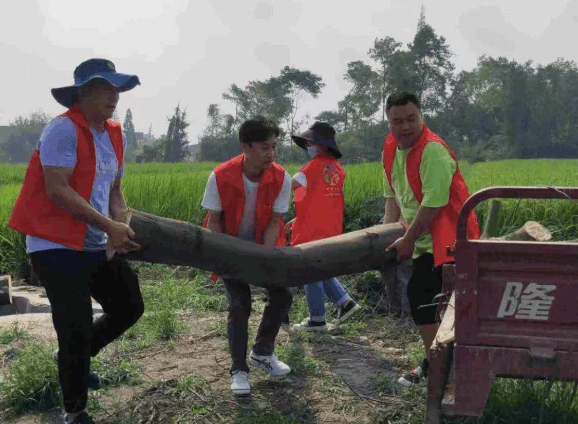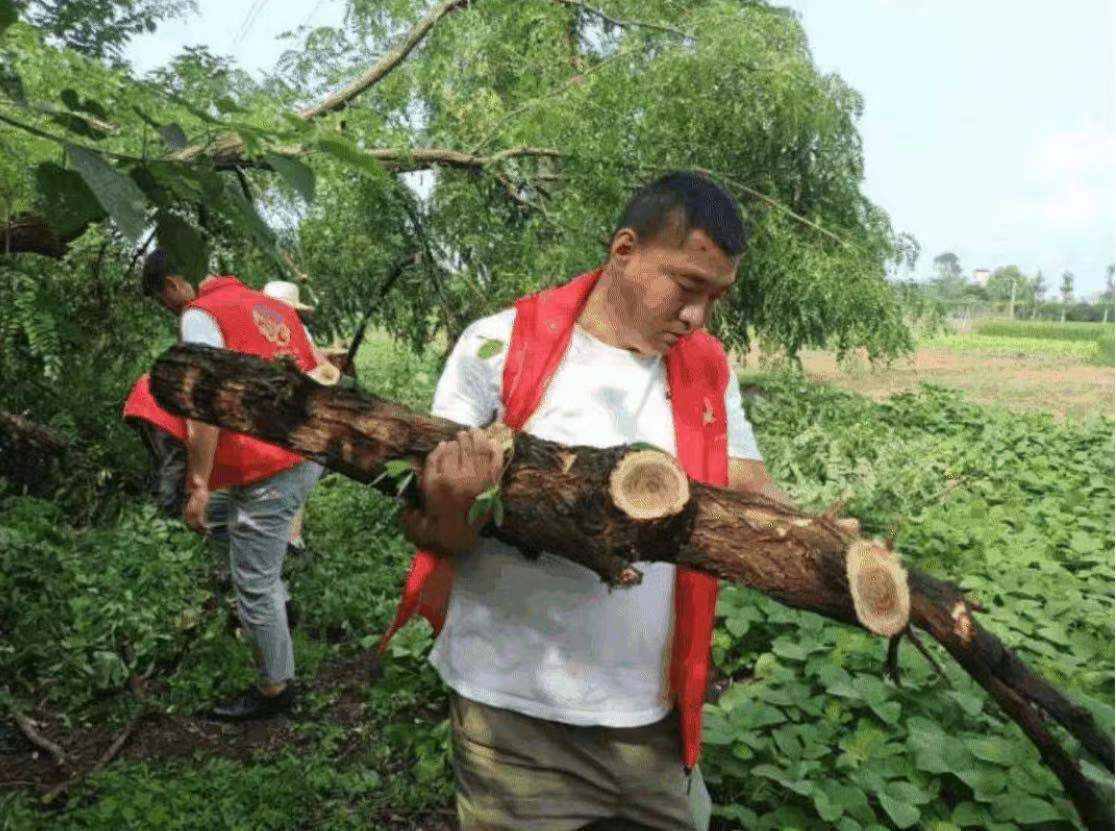 7月18日晚狂风骤雨来袭,“排危治危青年党员突击队”闻令而动,积极清理吹翻的铁皮瓦、受损房屋,倒伏影响安全的树木竹林以及农作物等。宝马村青年突击分队队长廖贤回忆道:“经过数小时奋战,直到7月19日凌晨才将倒塌在鹿鹤小区后宝马村村道上的大树清理完成。此时,恰好遇到接亲车队,幸亏我们及时清理,车队得以正常通行。没有耽误新人的结婚吉时。”截至7月20日,九尺镇排危治危党员青年突击队完成10条道路、4条沟渠的道服树木清理,修补5户村民受损房屋,排出3处高压电线的安全隐患,转移2户受灾村民。
