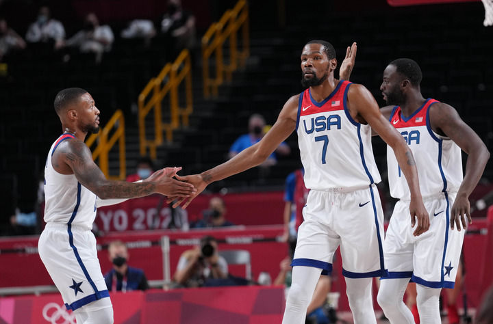 上一场只得到11分的核心后卫利拉德本场终于发挥出来,上半场就命中6个三分球,得到18分,帮助本队60:30领先了30分。下半场美国队轮番上阵,所有人都有得分入账,有6人得分超过10分,利拉德得到最高的21分。