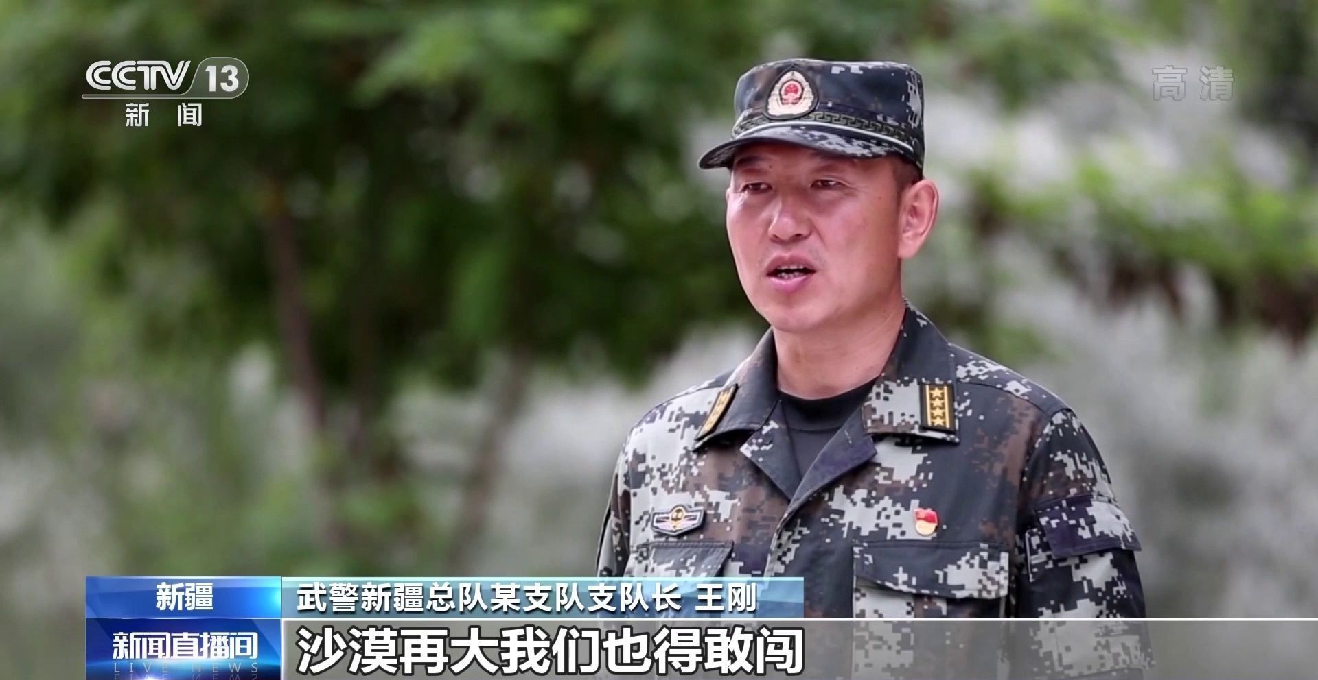 武警新疆总队某支队支队长 王刚:雪山再高我们也得要上,沙漠再大我们也得敢闯。只要暴恐分子可能藏匿的地点,我们都要展开针对性的训练。