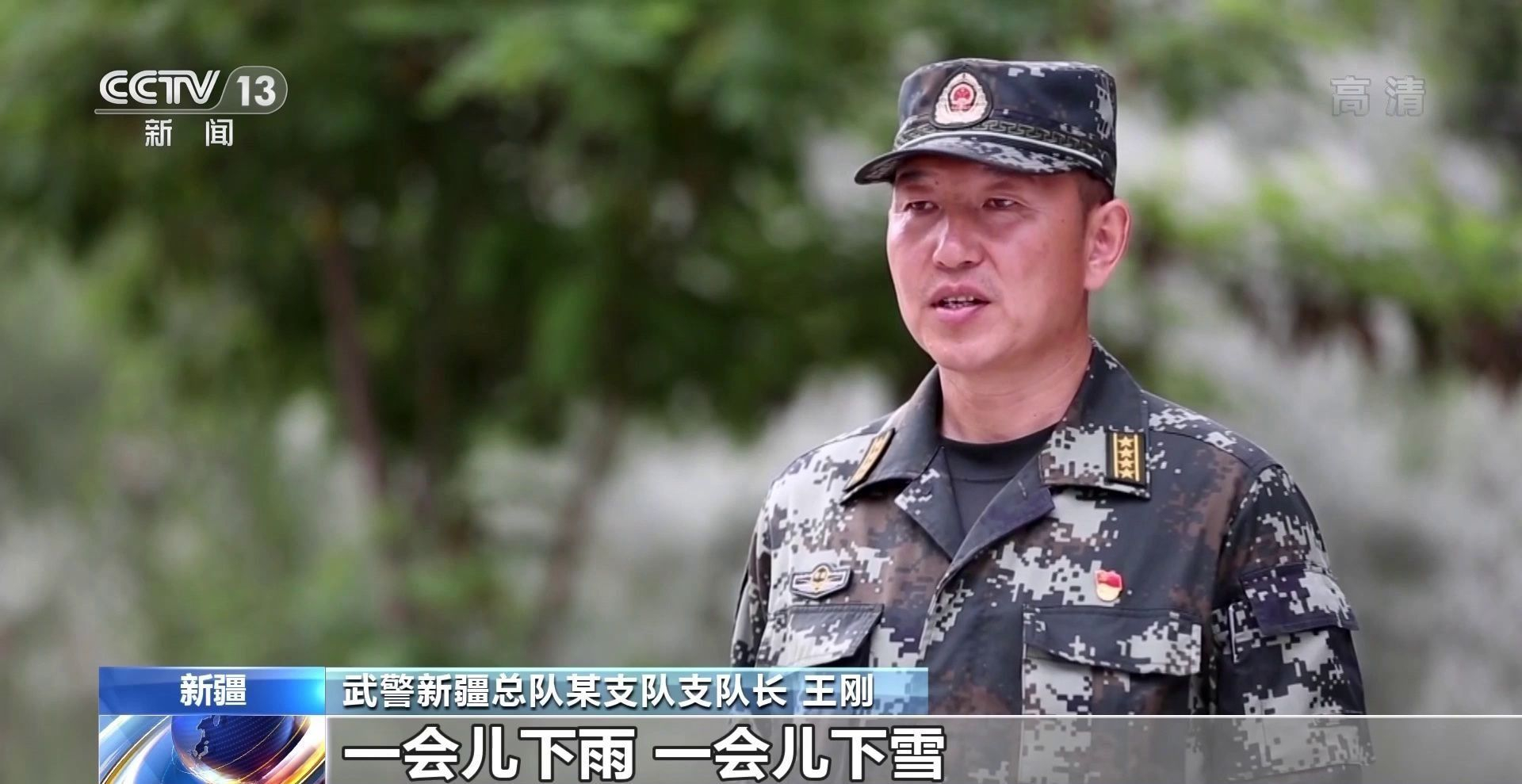 武警新疆总队某支队支队长 王刚:搜索推进到哪,我们就露宿到哪。天气实在是太差了,一会儿下雨一会下雪,一会儿爬雪山一会儿蹚冰河,最多的一天我带着特战队员蹚了6次冰河。