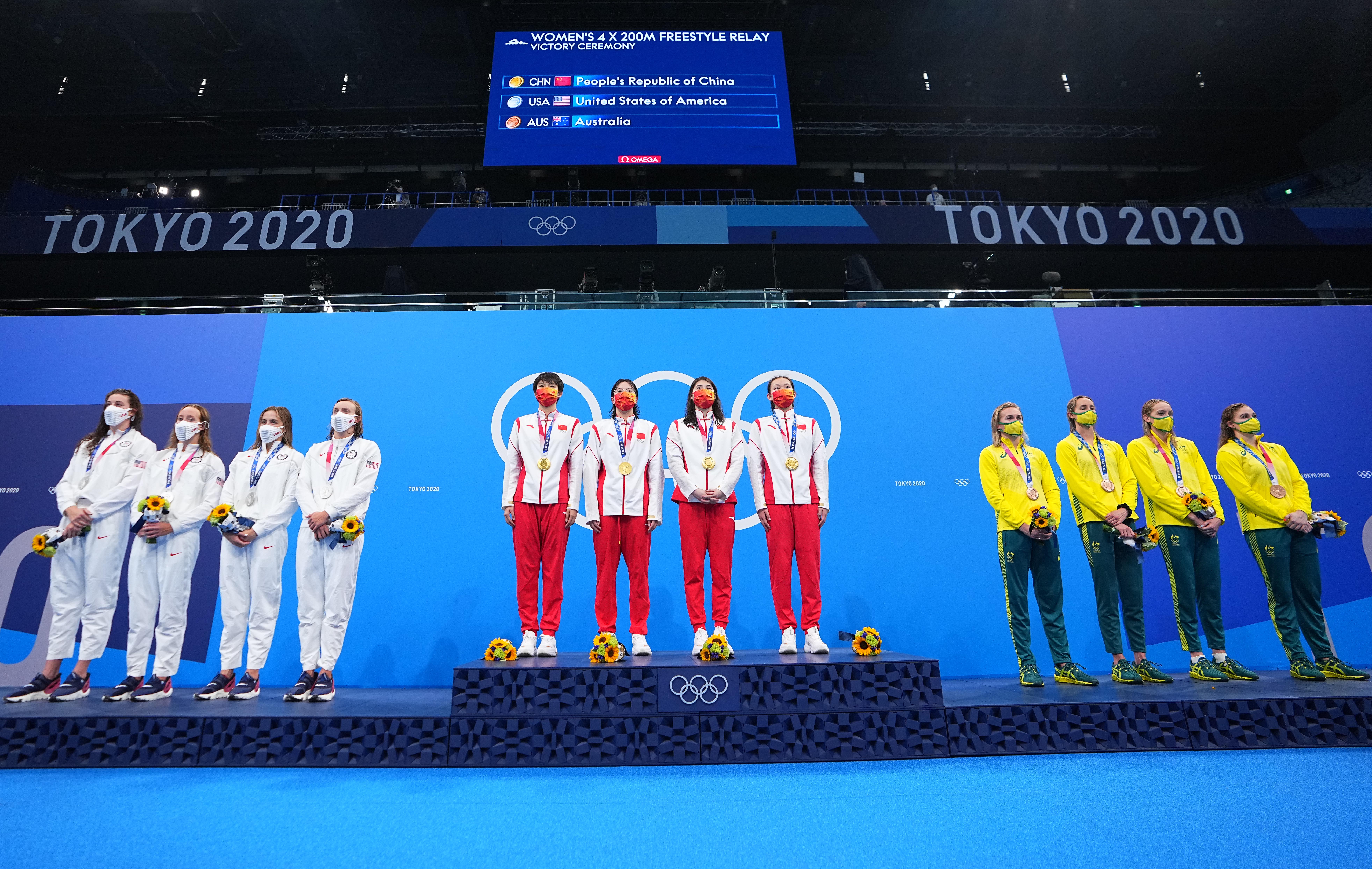 7月29日,东京奥运会女子4×200米自由泳接力决赛中,杨浚瑄、汤慕涵、张雨霏和李冰洁组成的中国队“爆冷”夺冠,并创造了新的世界纪录。这是中国代表团在此次奥运会中获得的第14枚金牌。