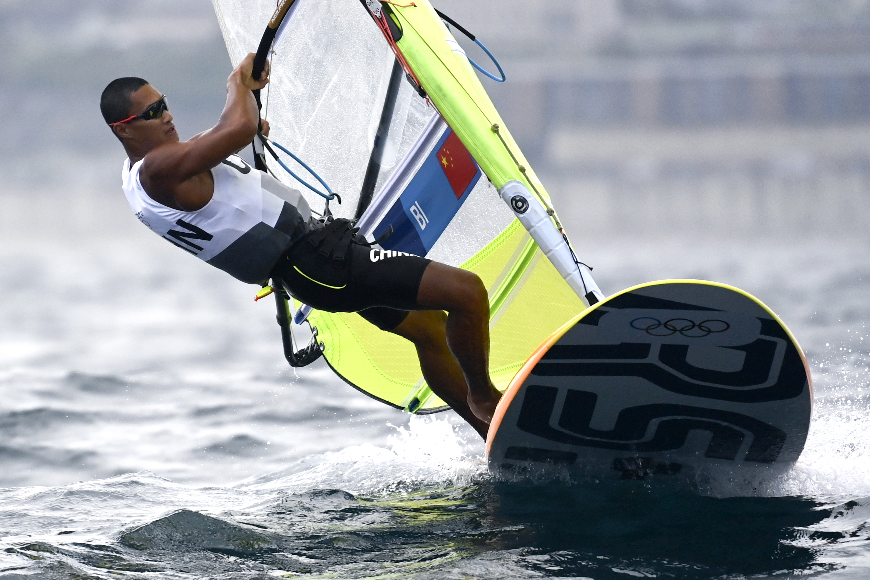 7月29日,毕焜在男子帆板RS:X级的比赛中。新华社记者 黄宗治 摄
