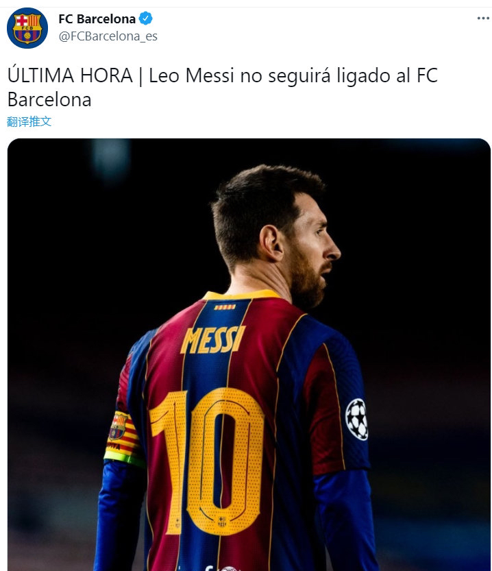 面对这种情况,梅西不会和巴萨继续联系在一起。巴萨忠心感谢梅西为球队发展做出的贡献,并祝愿他在个人和职业生涯中一切顺利。