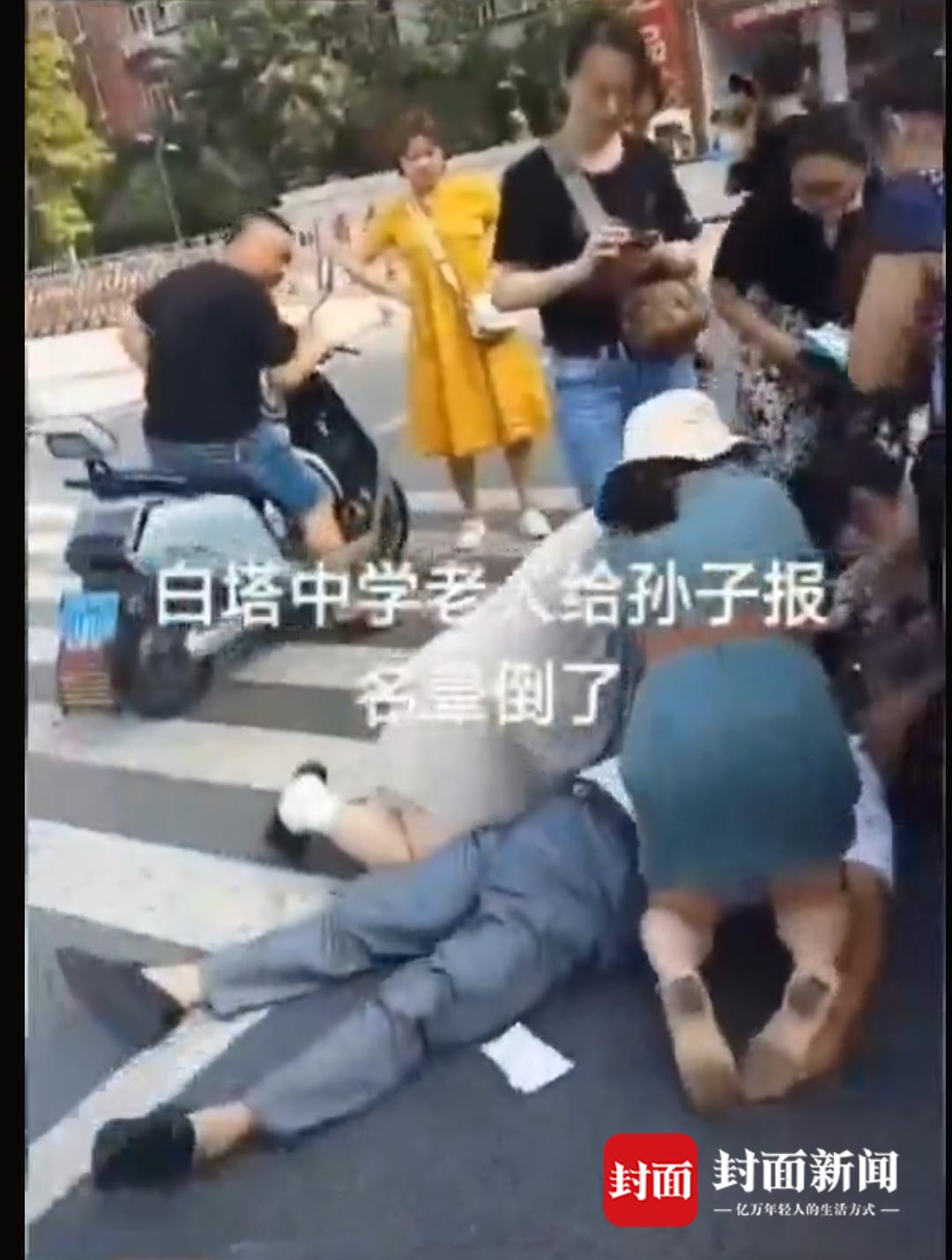 时间退回到6月25日上午,白塔中学校门口。平时工作繁忙的朱杰,换上漂亮的连衣裙,去给女儿开初中第一次家长会。走到学校门口,遇到一位老人突然晕倒。朱杰立即跑过去,穿着裙子的她,毫不犹豫双膝跪地,开展施救。