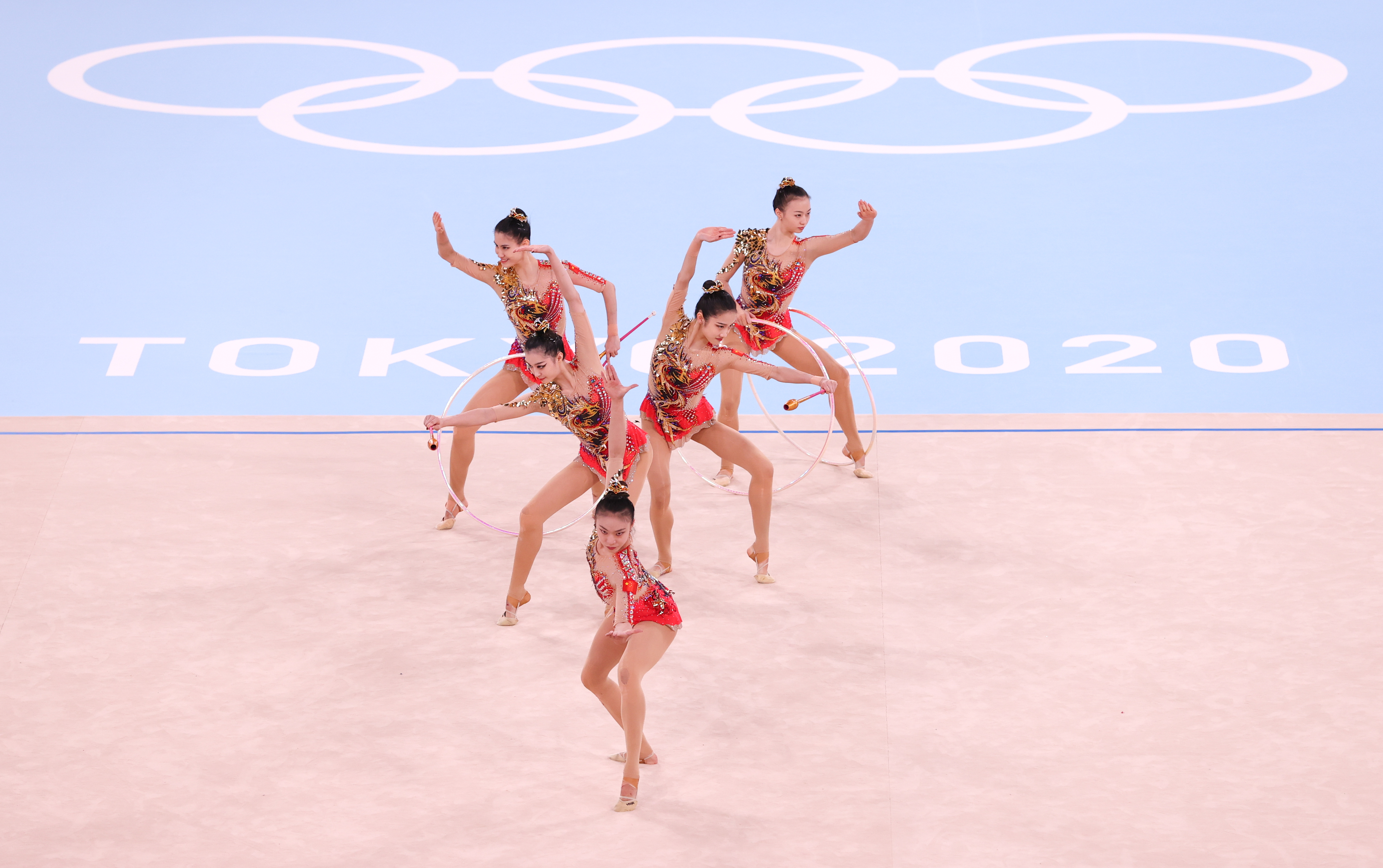 前往敦煌采风、深入芭蕾舞团学习……中国艺术体操队势必要在东京惊艳亮相,将中国传统文化之美、东方古风之美淋漓尽致地展现出来。郭崎琪、郝婷、黄张嘉洋、刘鑫、许颜书,五位平均年龄不到22岁的中国姑娘,在东京创造了历史。