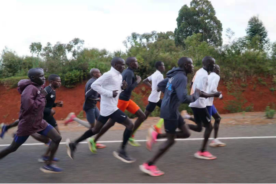 基普乔格在肯尼亚是家喻户晓的“英雄”,他的励志故事激励着许多肯尼亚人去实现梦想。或许由于这只是一次普通的训练,基普乔格一直处于第一阵营的中间位置。
