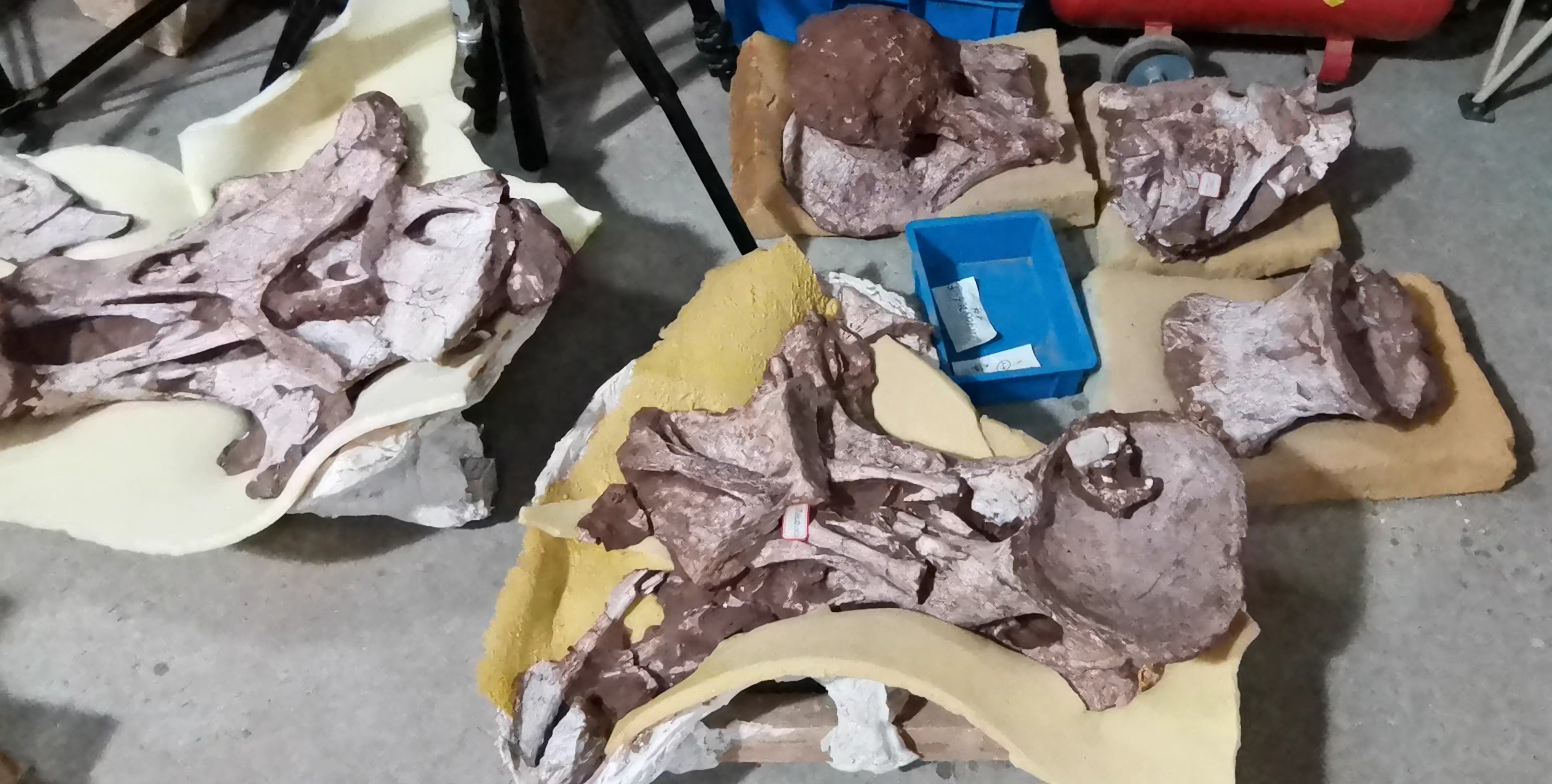 “散架”的恐龙骨架化石。新华社记者 冯源 摄