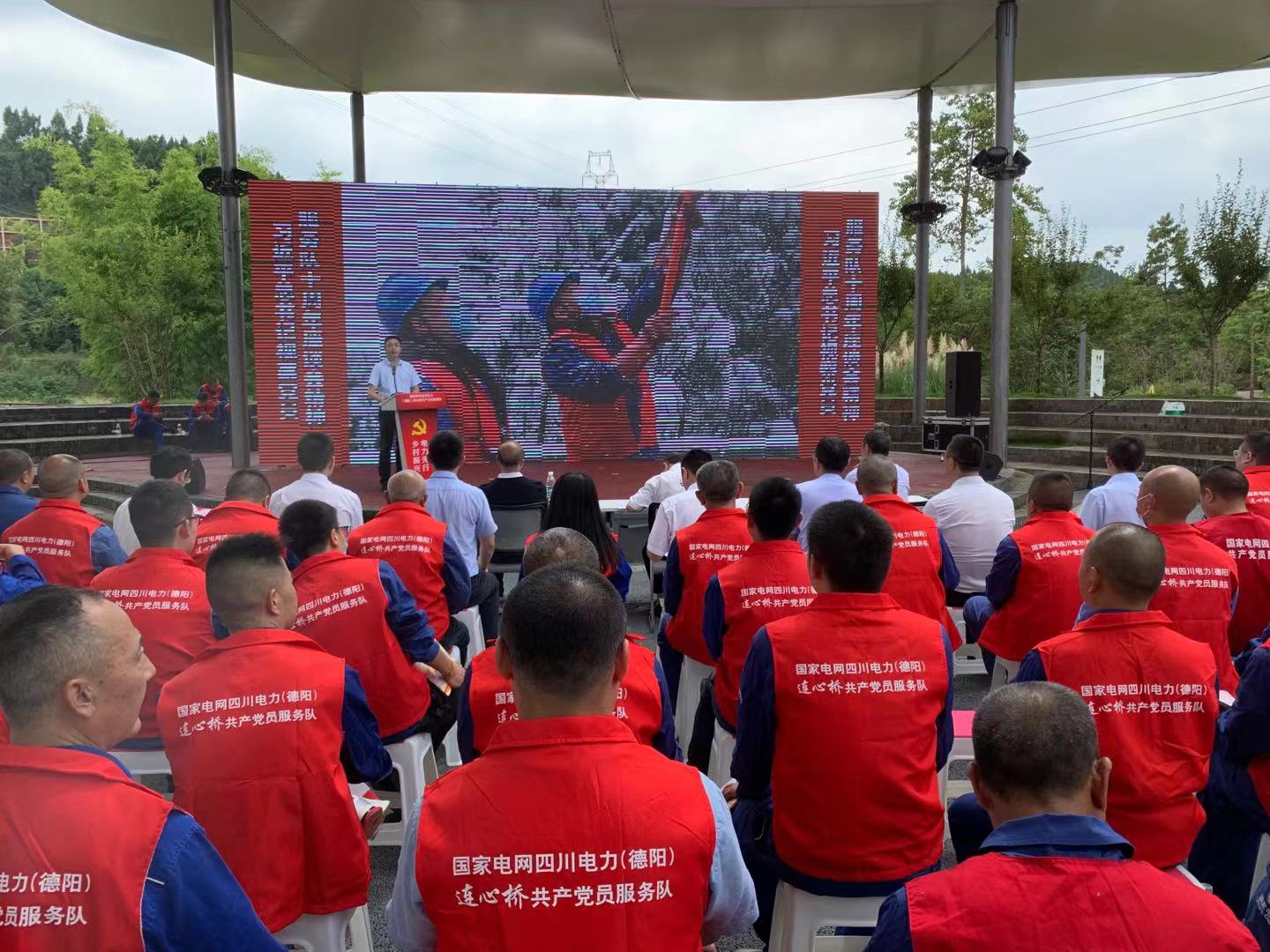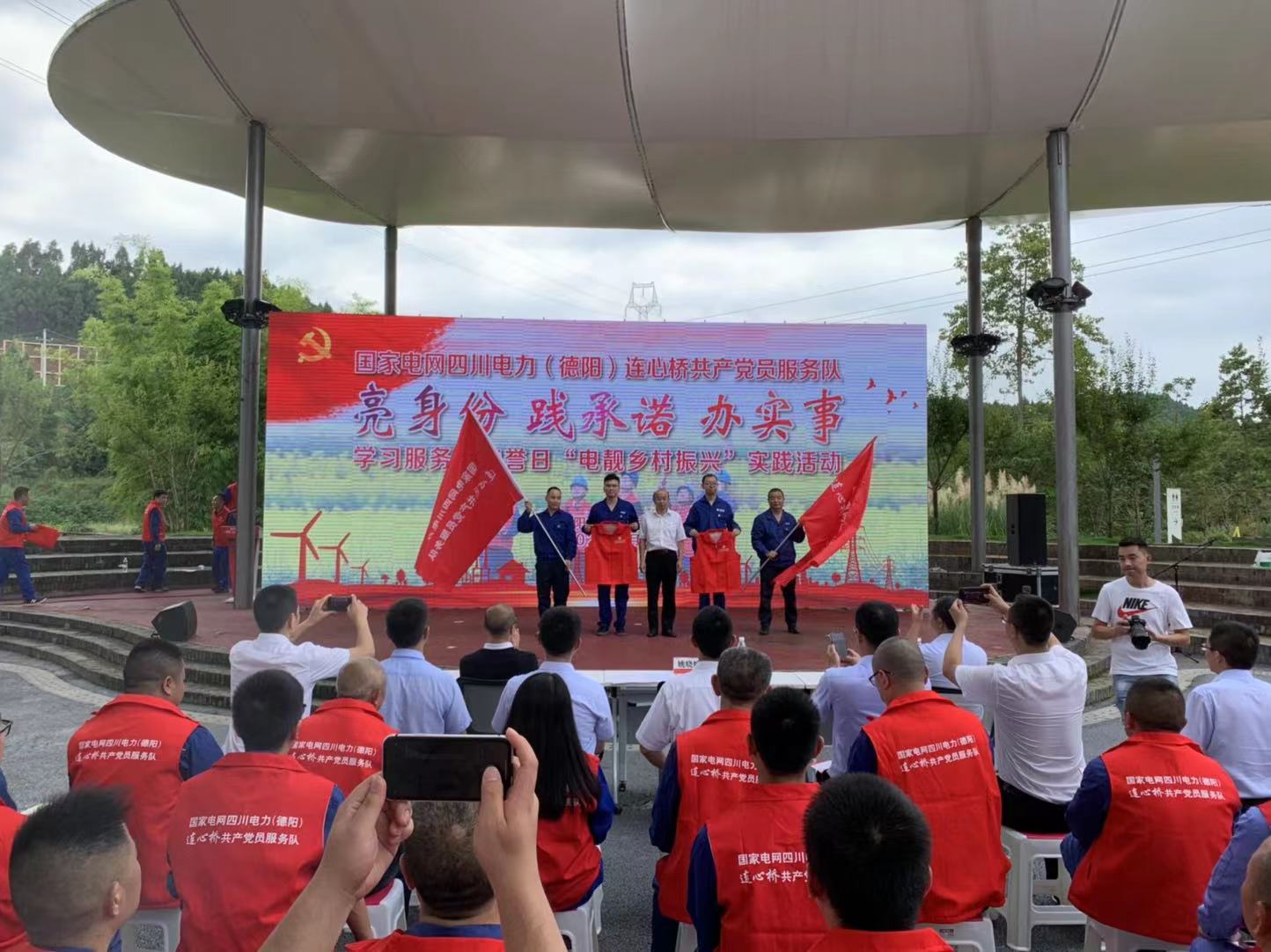 8月20日,国网四川电力(德阳)连心桥共产党员服务队在德阳市旌阳区高槐村,开展“亮身份、践承诺、办实事”学习服务月“电靓乡村振兴”活动。国网德阳供电公司为新成立的两支共产党员服务队授旗、为新入队队员发放了新队服。前段时间,这支服务队还前往河南,完成了抗洪保电任务。