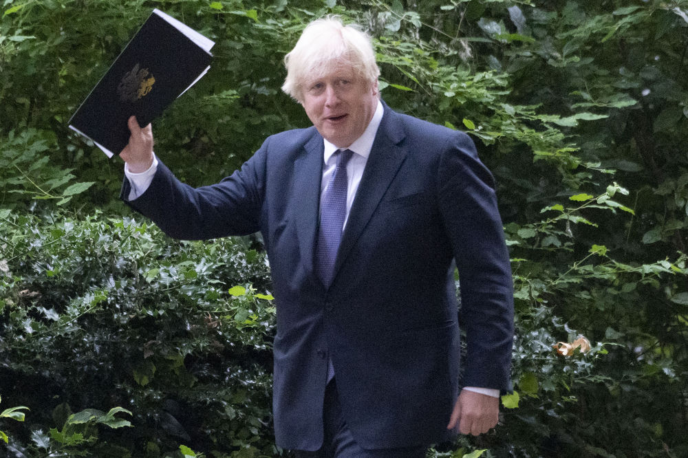 7月12日,在英国伦敦,英国首相约翰逊在参加疫情发布会后返回首相府。(新华社发,雷伊·唐摄)