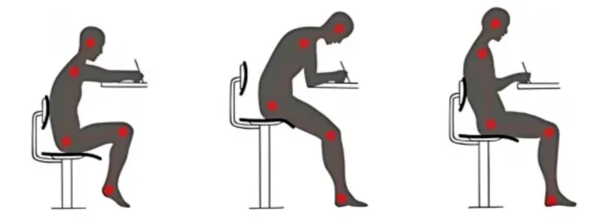 头前倾、交叉腿、跷二郎腿等不良坐姿,会对腰椎产生更大的压力,使脊柱曲度异常、肩部向前倾斜、头部和颈部前屈等,从而导致腰椎间盘和周围软组织承受额外的压力,进而引发腰部疼痛、腰椎间盘突出、下肢血流循环不畅、骨关节炎等一系列问题。