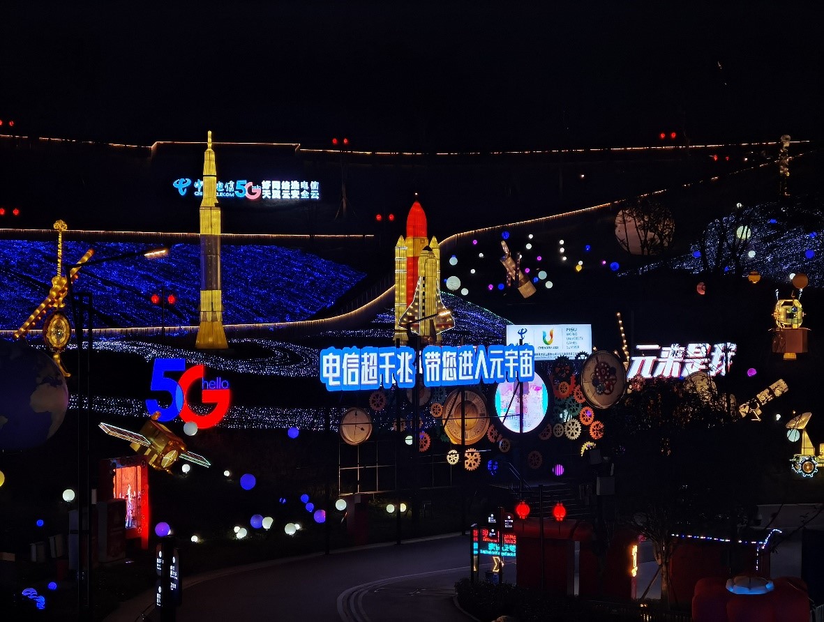 作为中华彩灯大世界云观灯的通信服务提供和保障单位,中国电信始终把“云观灯”的通信保障任务作为最重要的工作任务来落实,本次中华彩灯大世界云观灯启动前,自贡电信在自贡彩灯大世界区域开通了5G基站4个,4G基站13个,为灯会提供了速度更快、信号更稳定、覆盖更全的高速网络服务。
