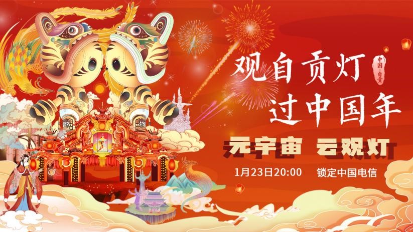 2022年1月23日,“中国·自贡中华彩灯大世界云观灯”全网直播,为全网观众带来融合传统国风文化的沉浸交互式数字型景区新玩法,让广大观众在云上领略一场“五岳归来不看山、自贡归来不看灯”的极致视听体验,中国电信全程提供直播技术支持。