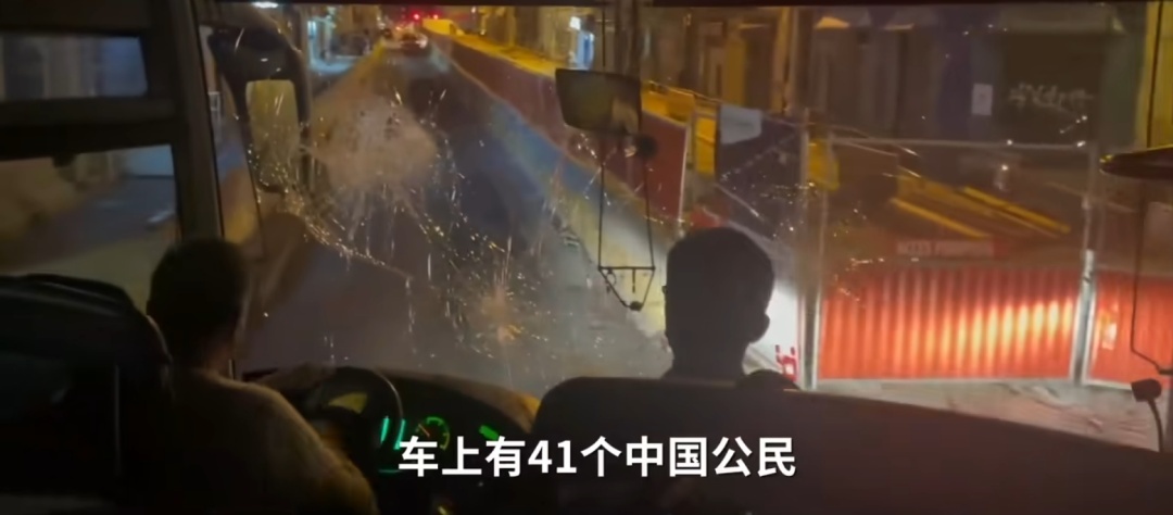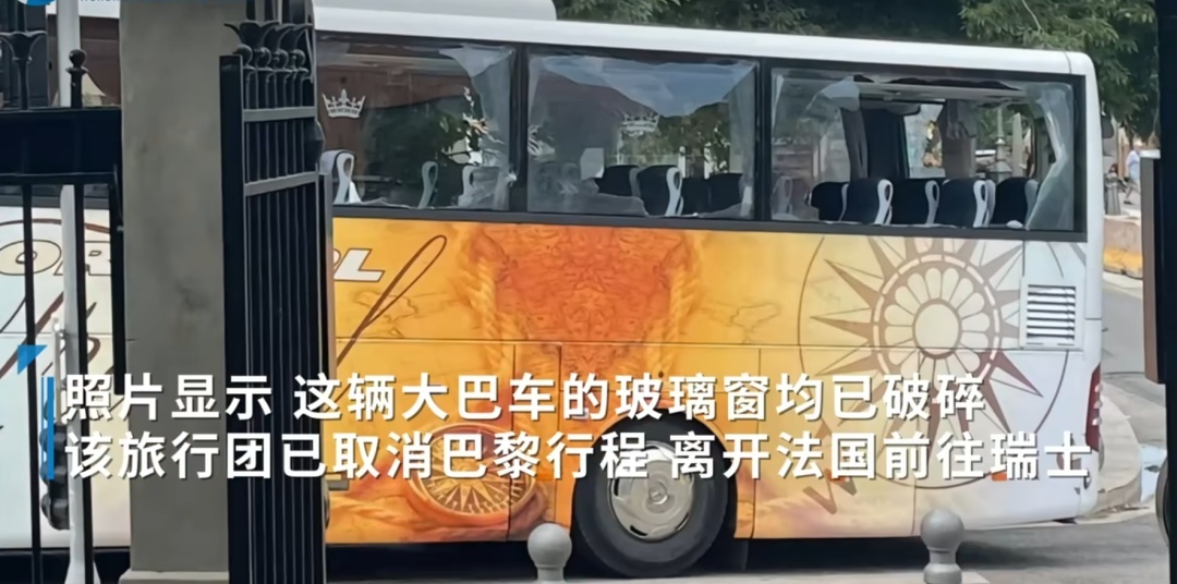 视频拍摄者称,被砸车辆是一辆旅游大巴,车内有41名中国游客,车上有人员受伤。目前该旅行团已取消巴黎行程,离开法国前往瑞士。(大象新闻)