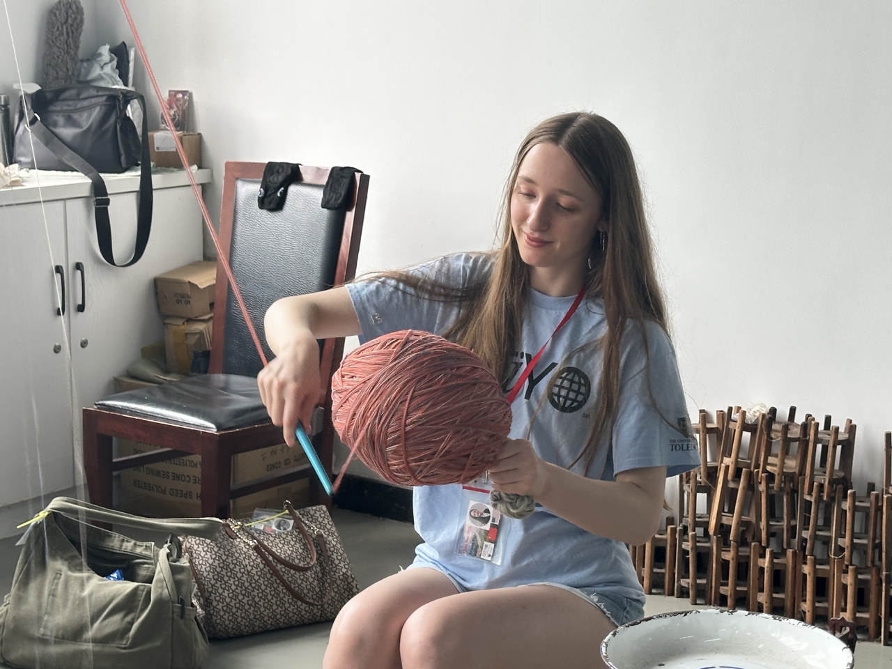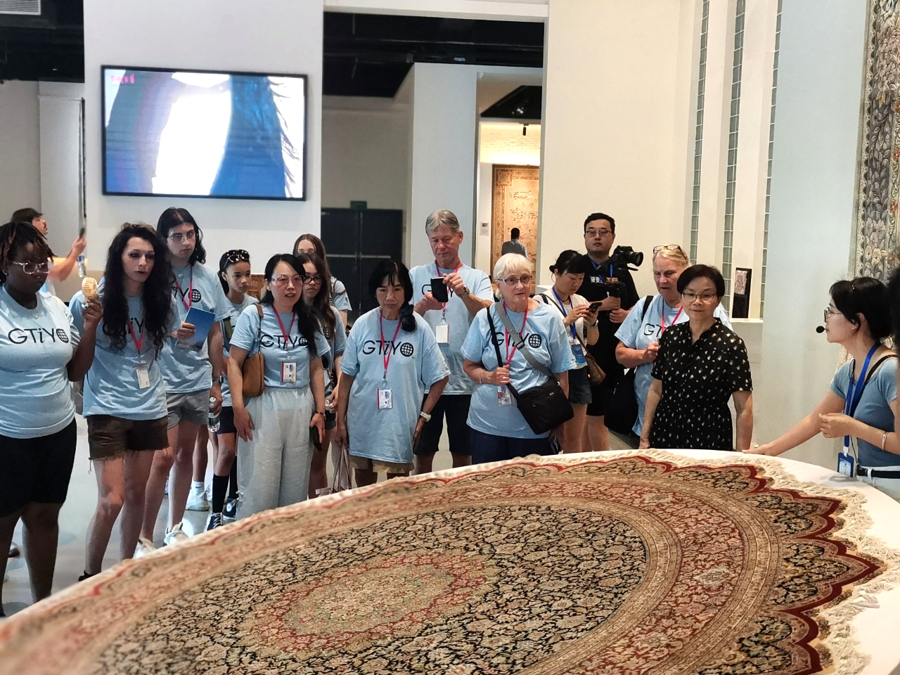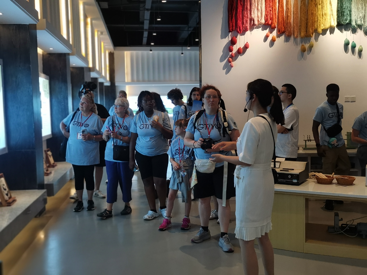 美国大托莱多国际青少年弦乐团成员在阆中丝毯博物馆参观体验。(阆中丝毯博物馆供图)