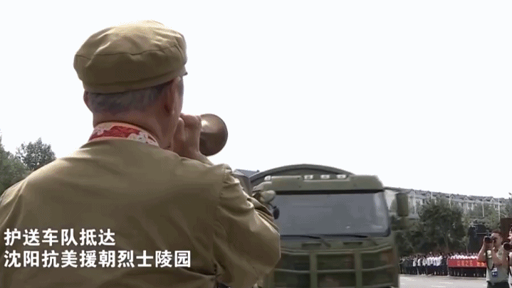 礼兵护送志愿军烈士棺椁
