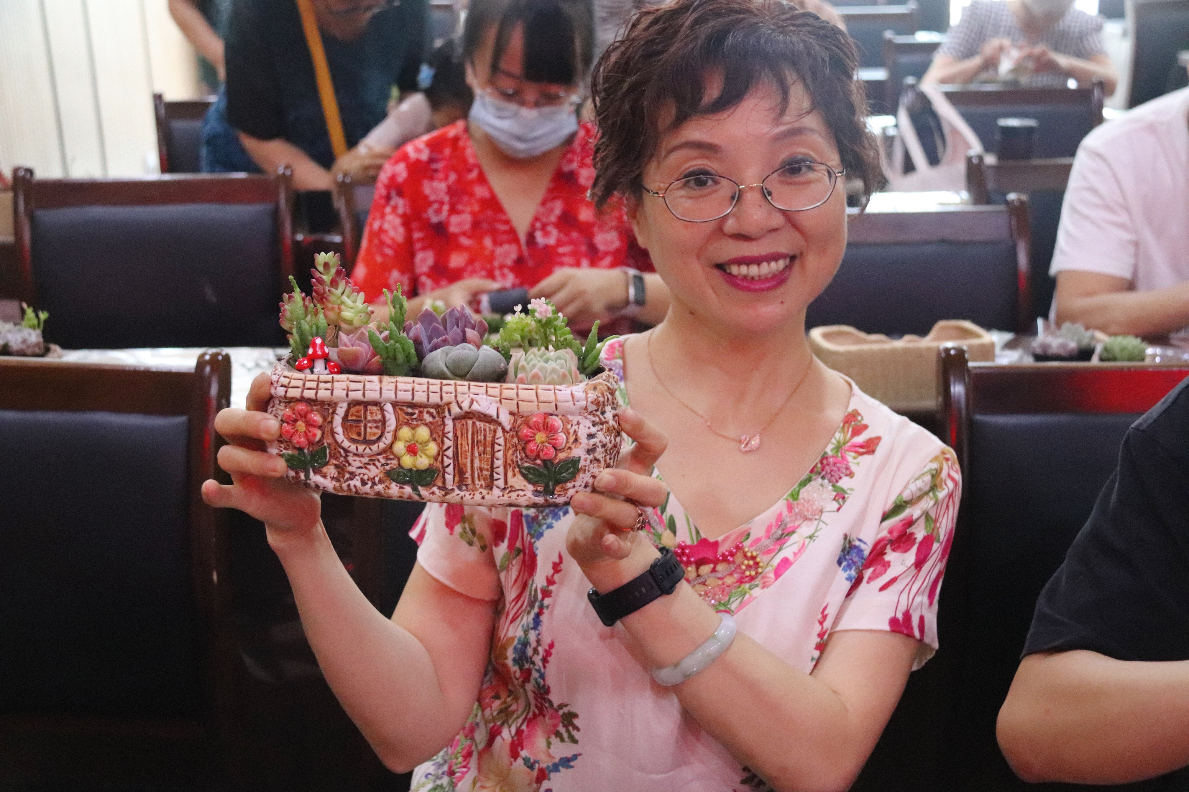 花植赠送环节结束后,现场还邀请了成都工匠、国家二级插花技师叶青,带领社区30多位多肉爱好者DIY多肉微景观。活动中,叶青还用通俗易懂的语言向市民们讲解了多肉组合的造型要素和技巧手法。