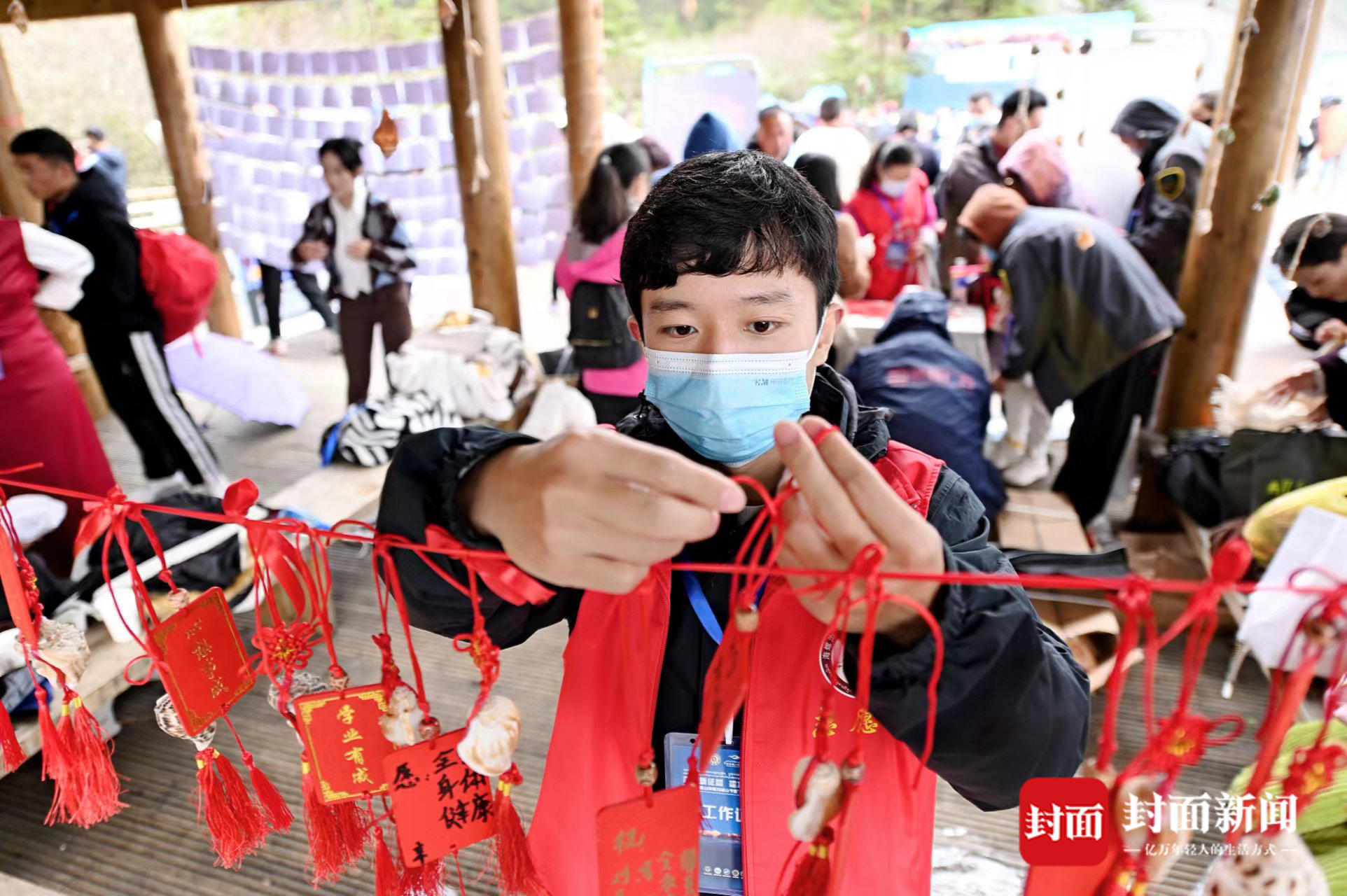 在喊山节活动现场,不少游客齐聚四号营地观景台,面向海螺沟一号冰川,高喊着对家人、朋友和祖国的祝福,并在现场悬挂海螺,留下了心愿祈福牌。在网络的直播间里,不少网友们留言点赞,积极与达人互动,交流心愿和祝福,“云上”参与到此次喊山节活动中。
