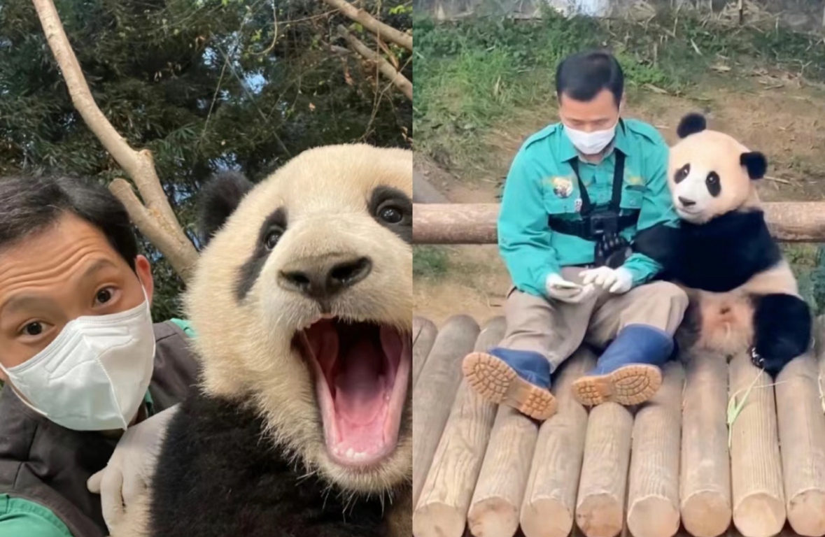 大熊猫“福宝”和饲养员 图片据网络