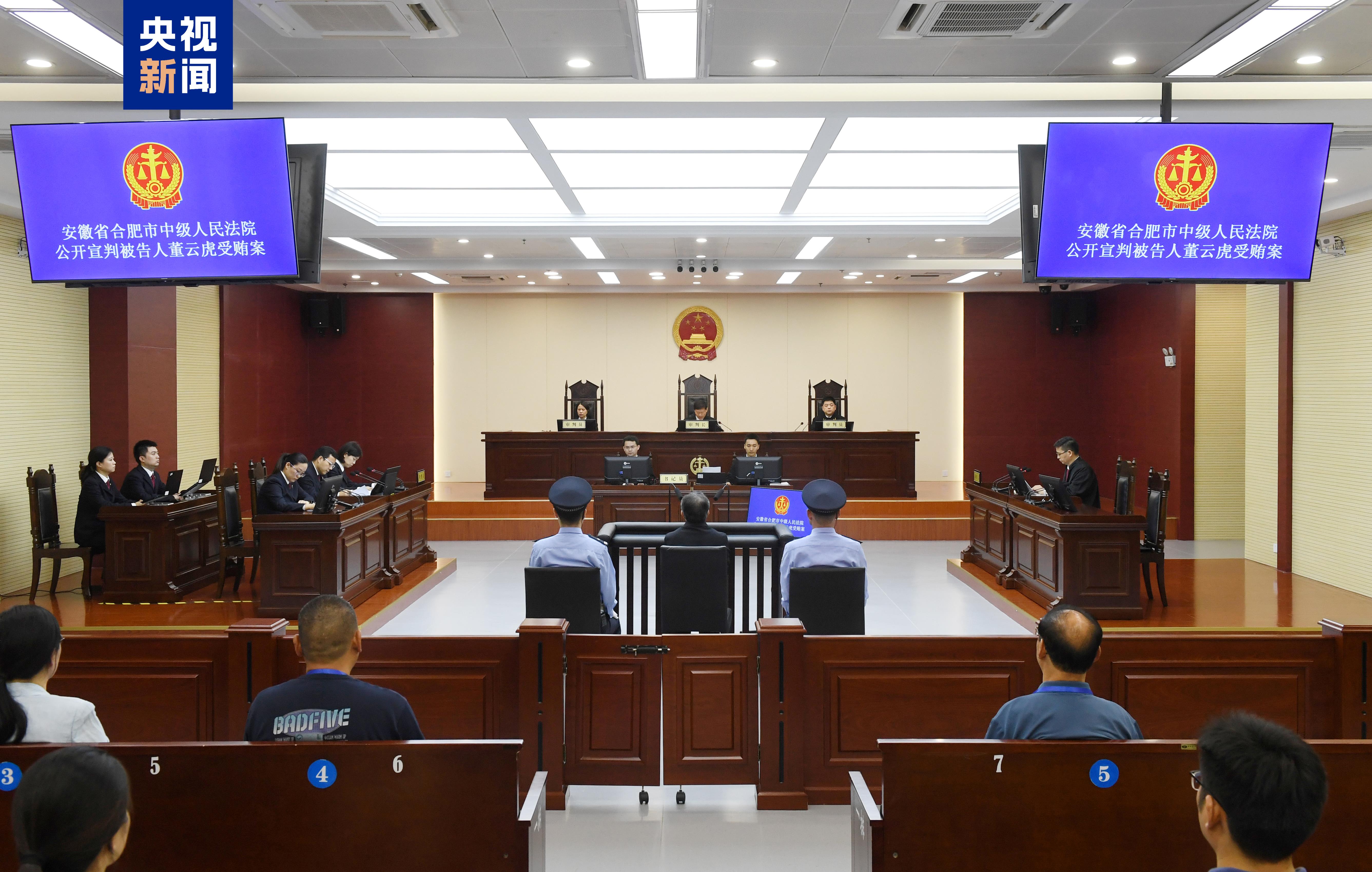 2024年8月28日,安徽省合肥市中级人民法院公开宣判上海市人大常委会原党组书记、主任董云虎受贿一案,以受贿罪判处被告人董云虎无期徒刑,剥夺政治权利终身,并处没收个人全部财产;对董云虎受贿犯罪所得财物及其孳息依法予以追缴,上缴国库。