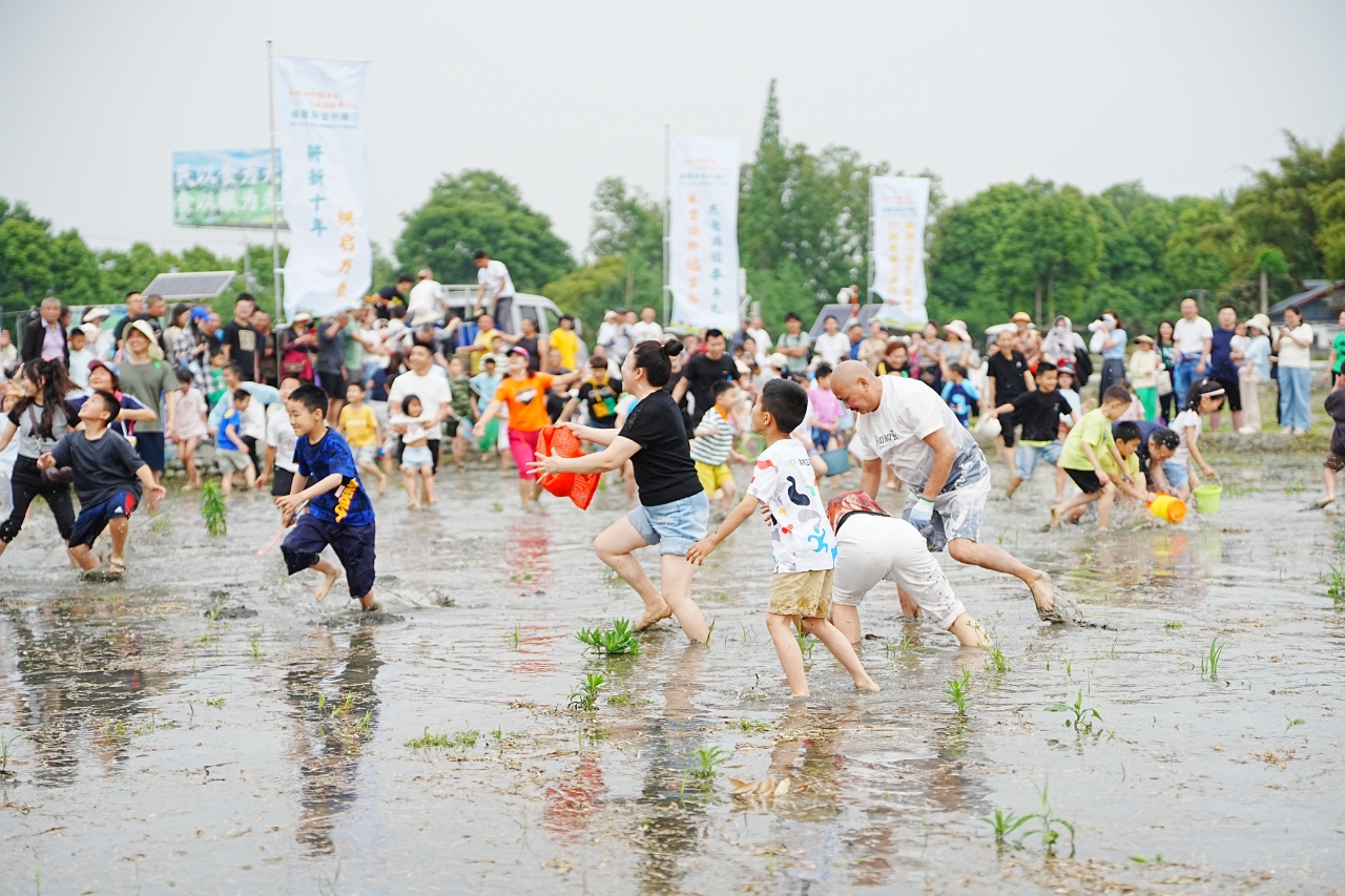活动还设置了丰富的互动和农旅项目。插秧比赛、徒手摸鱼、亲子互动游戏精彩纷呈,投放在稻田中的鱼苗吸引了大批游客下田“比拼手速”,热闹非凡。“温江造”系列特色农产品集体亮相,涵盖滴窝油、酥糖、红香糯等地方名品,农优集市人气火爆。现场还发布了2025年和林稻海秧苗图案,展示农田景观化种植的创新设计思路,并对和林片区重点涉农文旅项目进行了推介,进一步强化了“农业+文化+旅游”融合发展的新格局。