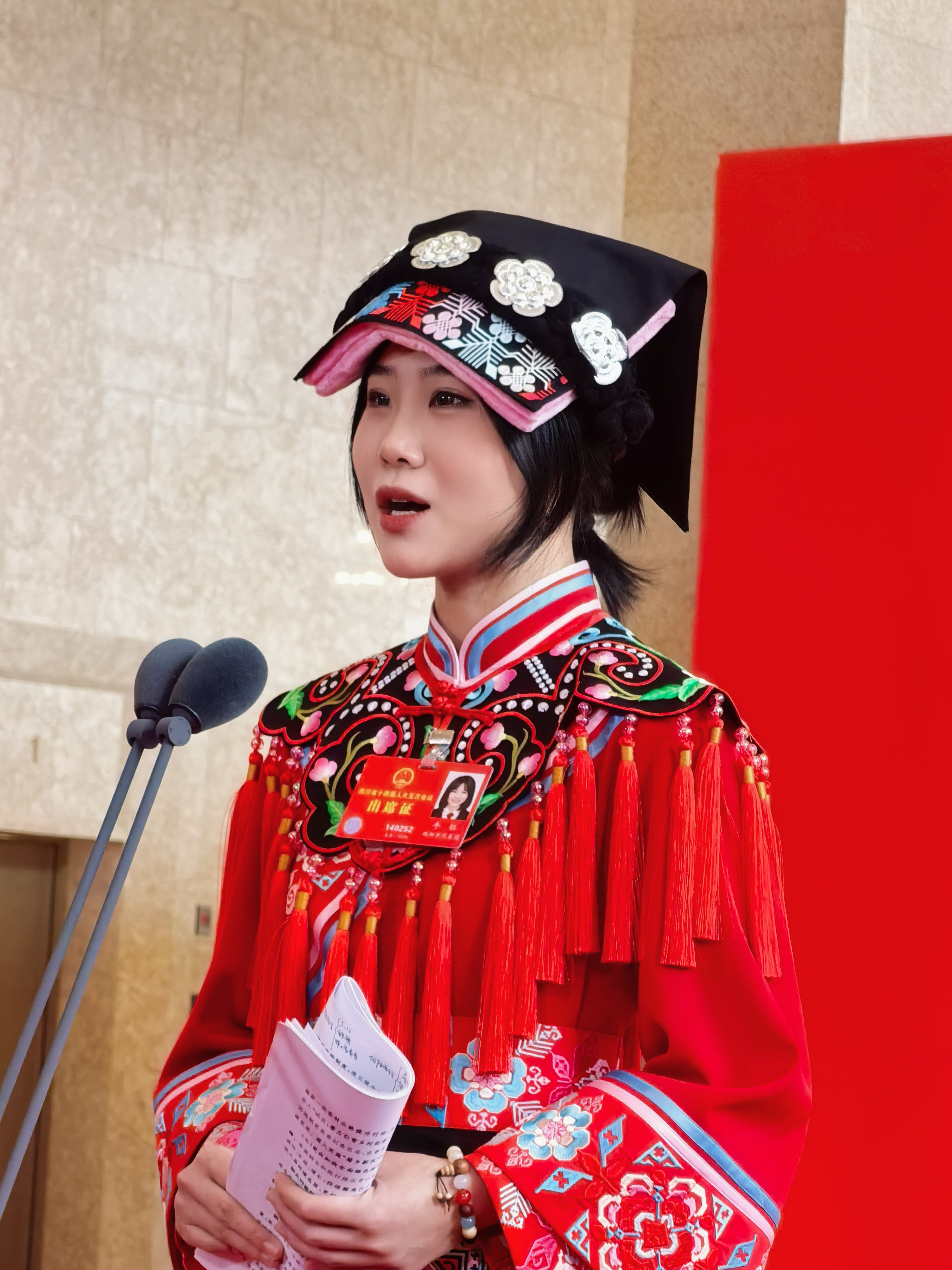 2月3日,四川省十四届人大五次会议开启首场“代表通道”。省人大代表、共青团绵阳市委副书记(兼)牛钰身着羌族服饰,自信走到台前。