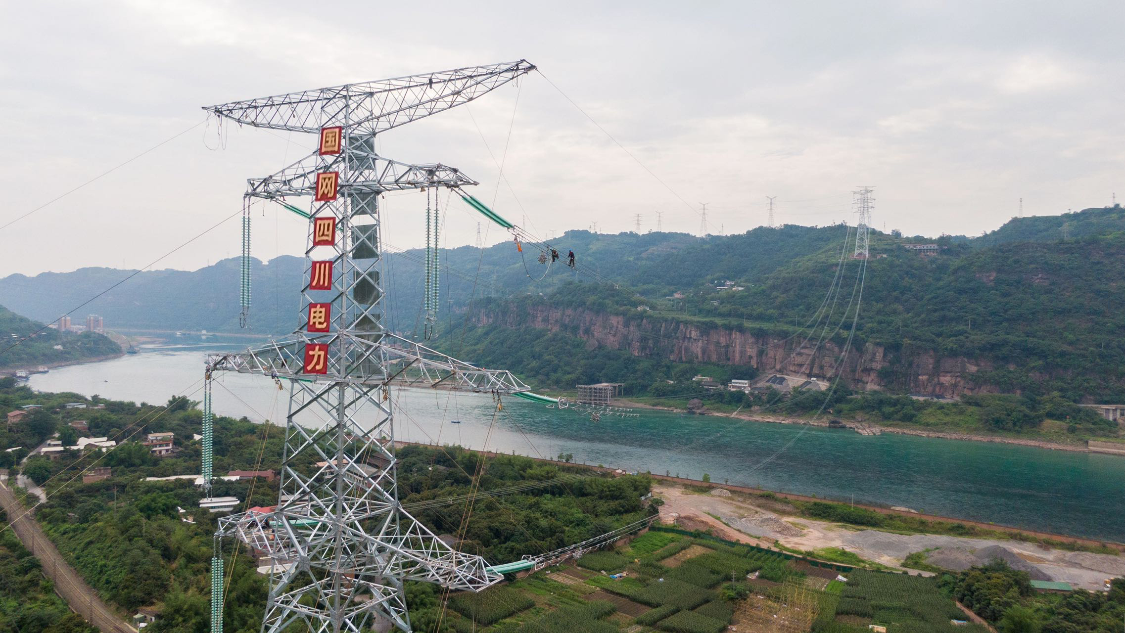 6月21日,在四川省宜宾市,金沙江两岸的铁塔上架起银色导线。500千伏建昌至叙府线路工程跨越金沙江段施工顺利结束,标志着攀西电网500千伏优化工程又完成一项控制性节点作业。