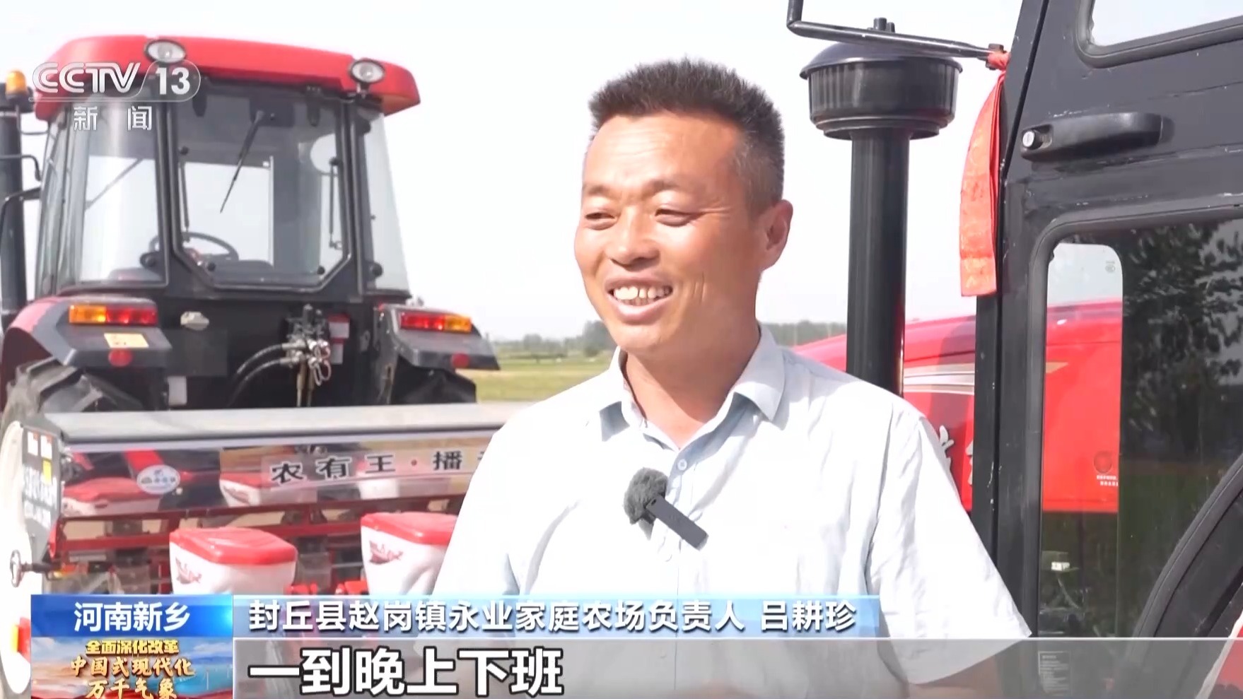 河南新乡封丘县赵岗镇永业家庭农场负责人 吕耕珍:现在回想起来20年前真是想都不敢想,一到晚上下班,两个肩膀累得都不成形。现在一个人坐在驾驶室里,轻轻松松地能播个一二百亩地。播种、起垄、开沟等等这一系列,包括田间植保作业,都能在掌控之内。