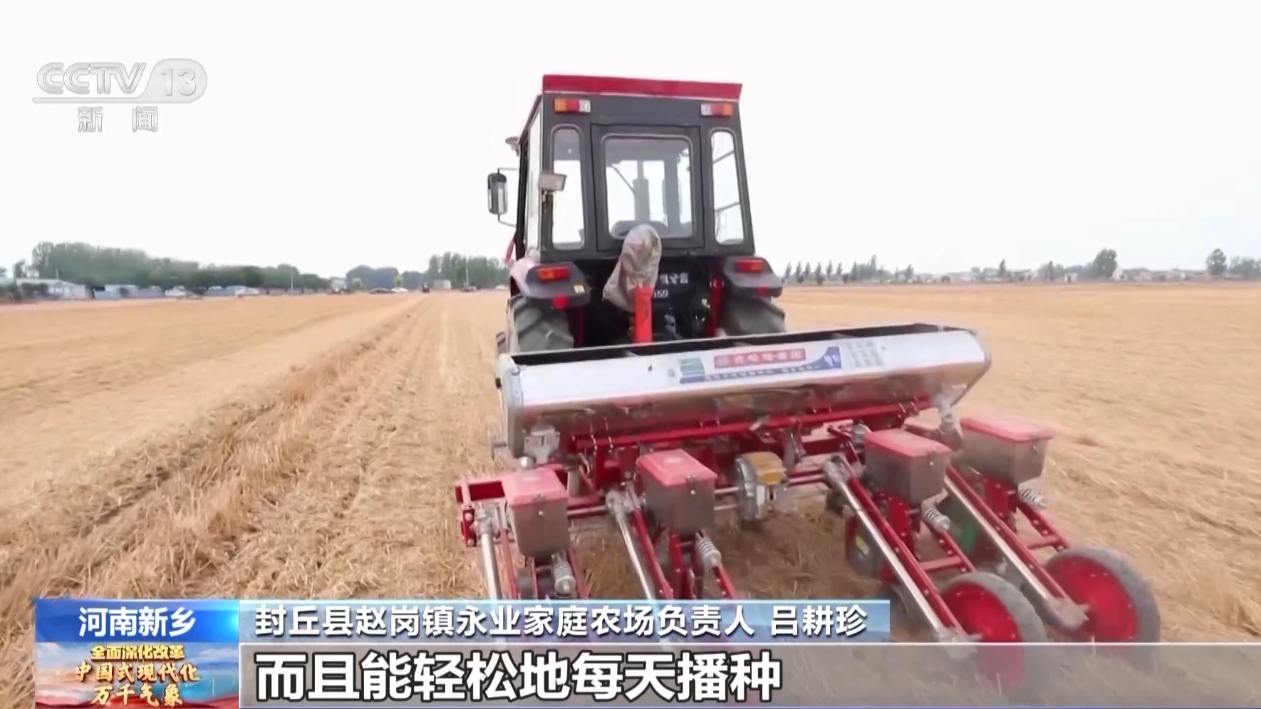 河南新乡封丘县赵岗镇永业家庭农场负责人 吕耕珍:看我这个新伙计,不但能代替我干活,而且能轻松地每天播种。我想着在不久的将来,随着我们的这个农业技术,以及高科技的不断创新,我们的农民干活会越来越轻松,我们的产量会越来越提高,品质会越来越好。