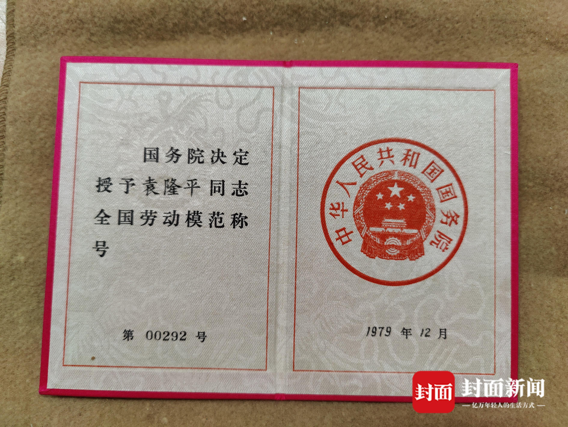 袁隆平所获“全国劳动模范称号”证书。封面新闻记者粟裕摄影