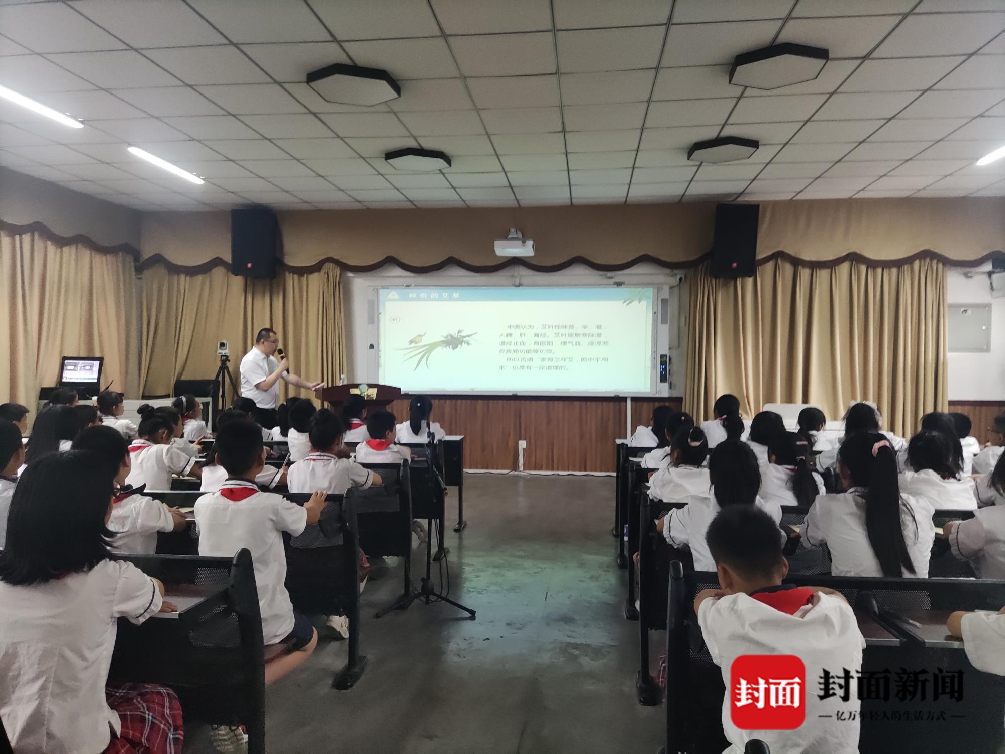作为本次都江堰市端午康养采药节系列活动之一,都江堰市青城小学举行了采药进校园活动。成都市第四批名中医、都江堰市人民医院耳鼻喉科博士张大铮为同学们讲授了《中医药文化主题课》,科普中草药知识。