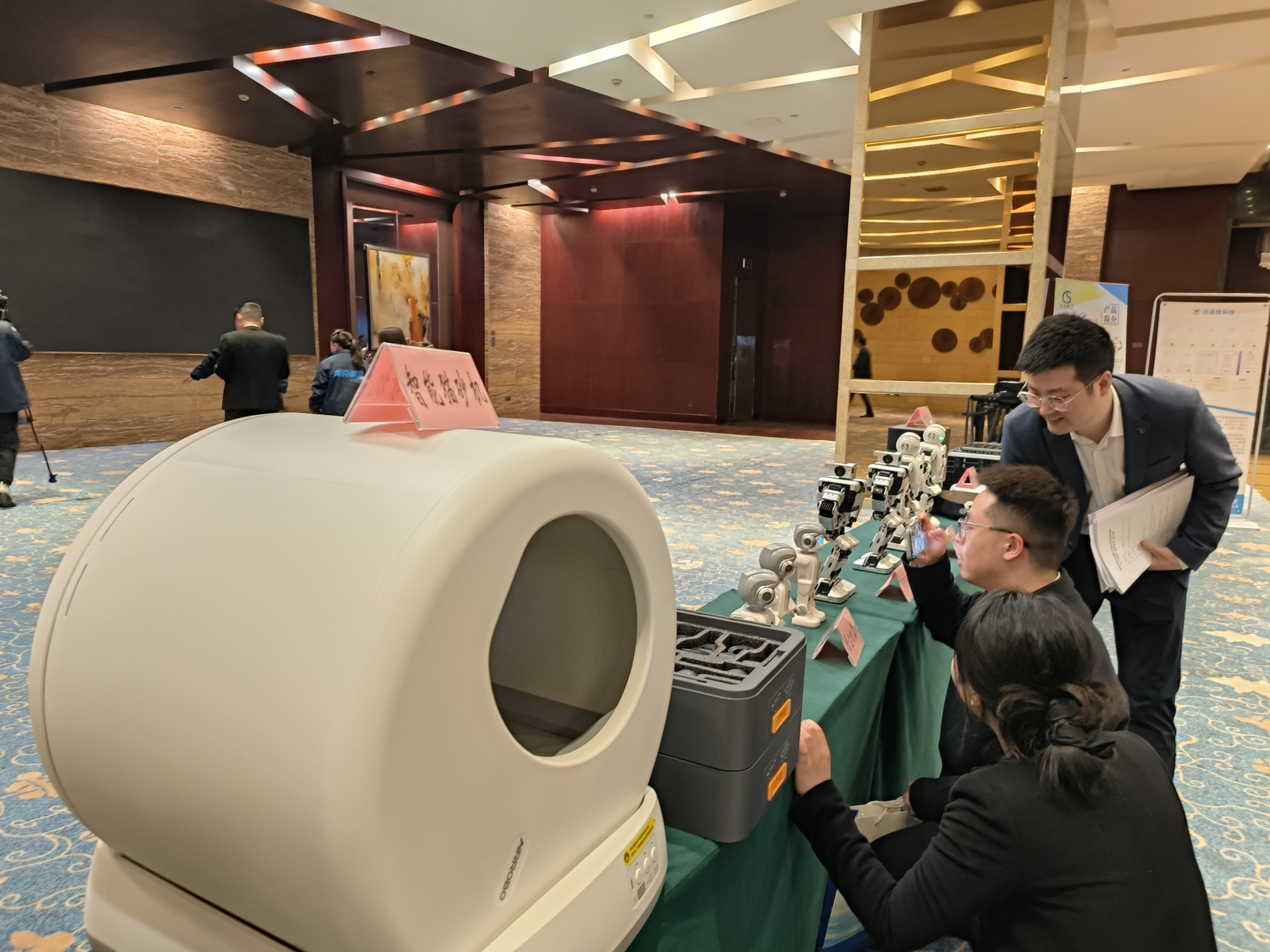 会场外的机器人引嘉宾互动。(拍摄:谢杰)