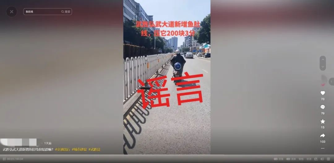 武胜孙某编造“道路扣分事项”网络谣言案。2024年3月31日,孙某为博取关注,在未经核实的情况下通过某网络平台发布视频称“武胜弘武大道新增鱼肚线,压它200块3分”的不实信息,引发网民关注、热议,造成不良社会影响。目前,孙某已被公安机关行政处罚。