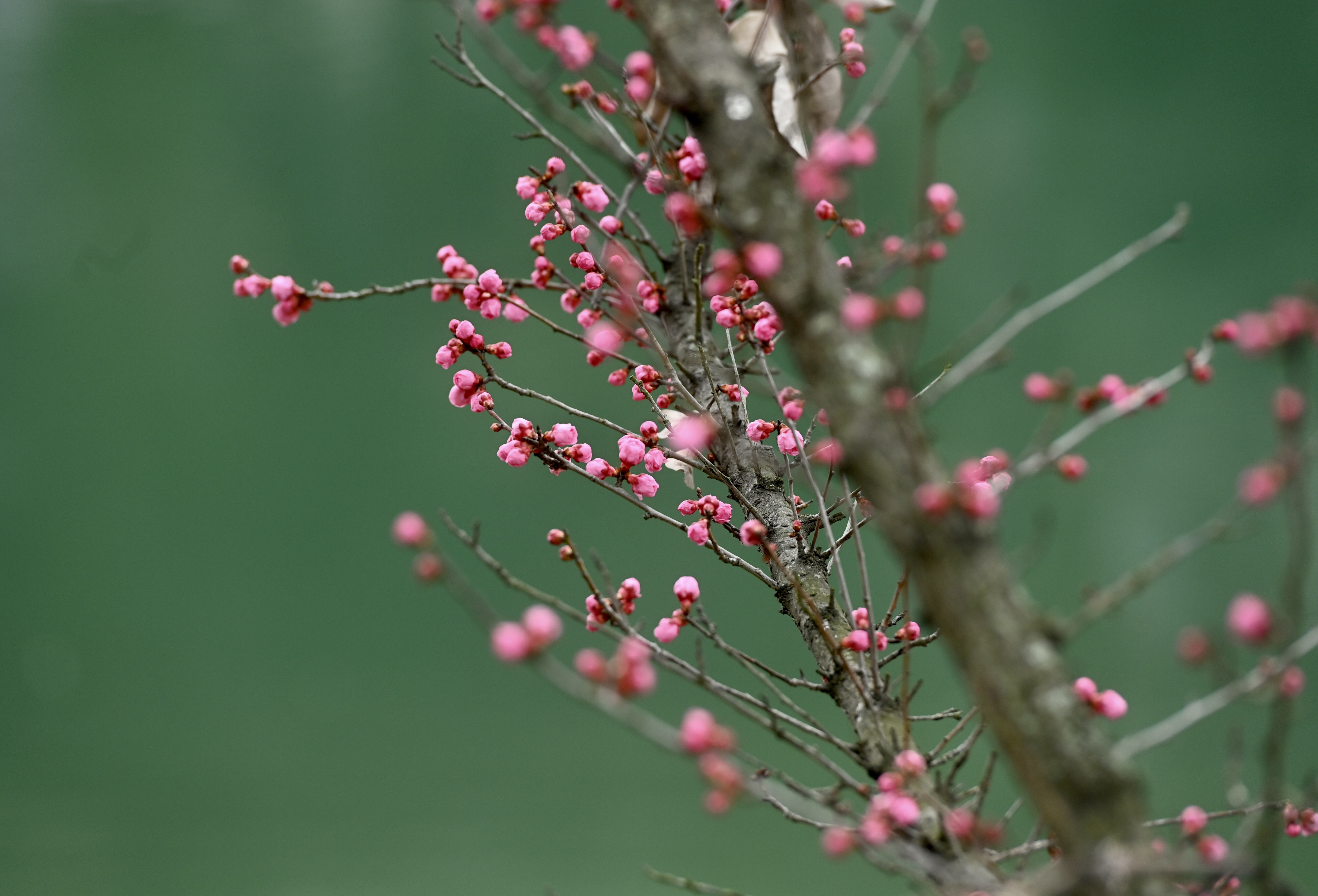 今日立春,大地解冻万物复苏,立春到,花儿俏。成都望江楼公园锦江边,连片的红梅花含苞待放竞妖娆。