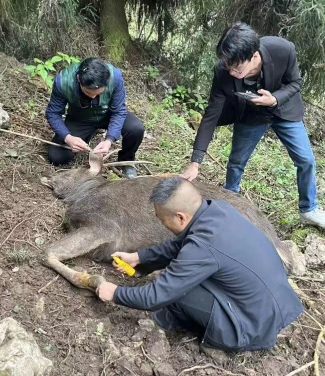 “像马又像鹿,伤得很严重。”近日,成都大邑公安接群众报警称,成都市大邑县鹤鸣镇大坪村山坡上发现一头受伤的野生动物,倒在地上无法动弹。