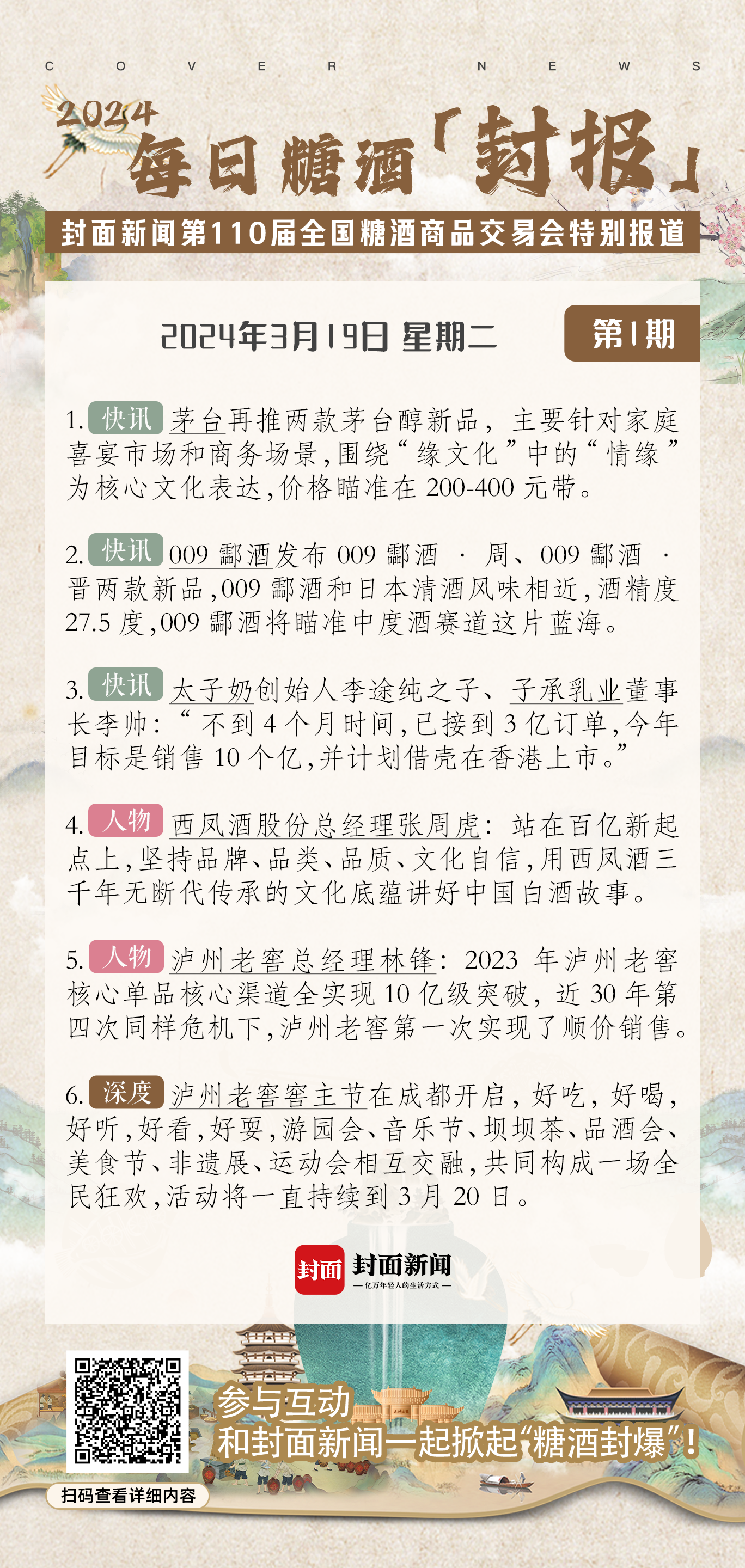 糖酒封报丨第1期:茅台醇新品瞄准喜宴市场 子承乳业计划在港上市 封面区块链 该文章已上链 > 封面新闻 2024-03-26 11:20 67157 评论 1 德华纳 2024-03-26 发表于四川 港股新星?期待子承乳业的表现! 我要评论