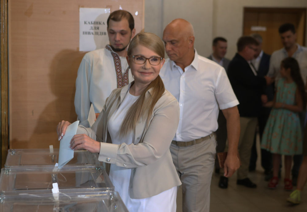 2019年7月21日,乌克兰前总理季莫申科(前)在首都基辅市内一处投票站投票。新华社发(谢尔盖摄)