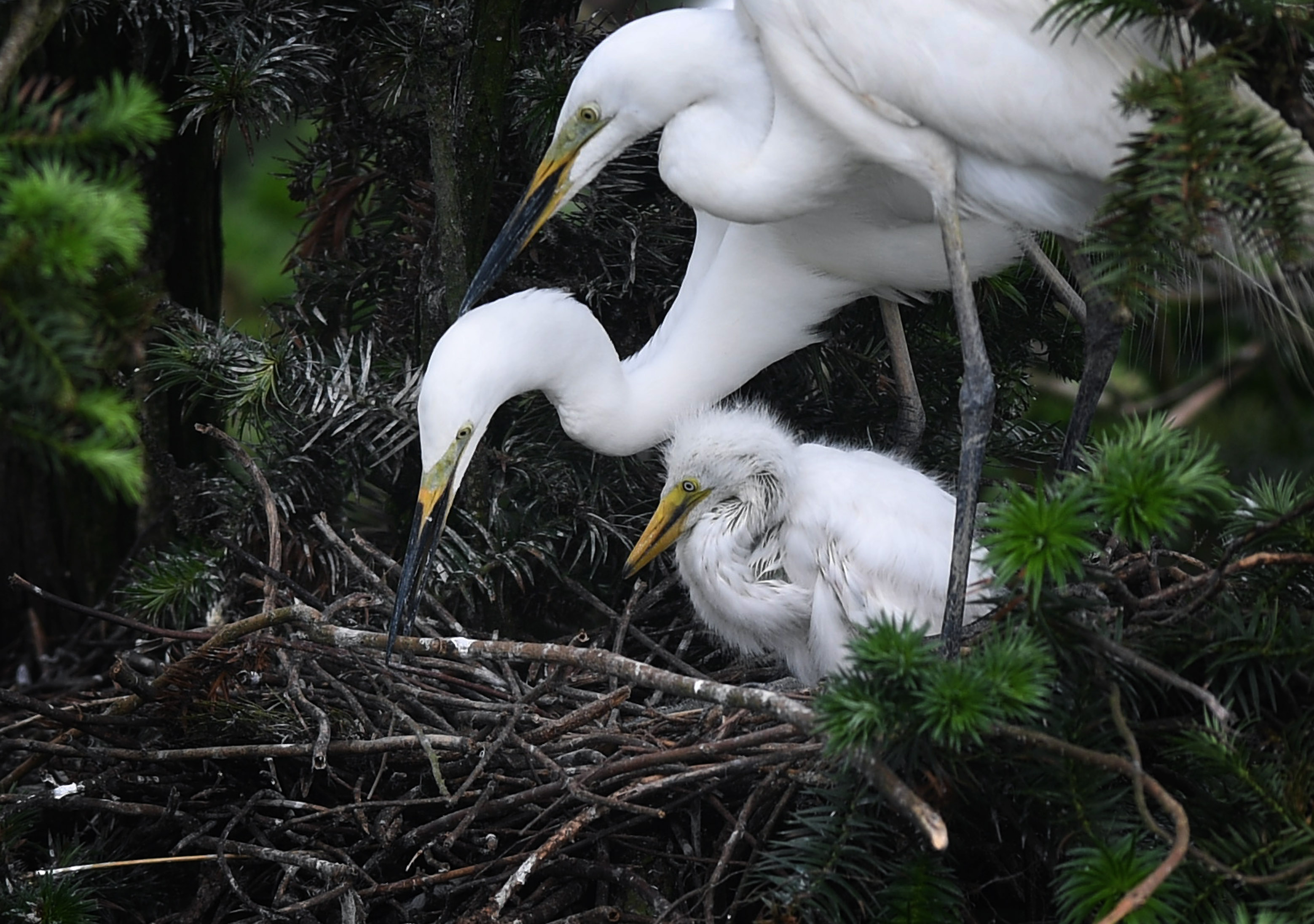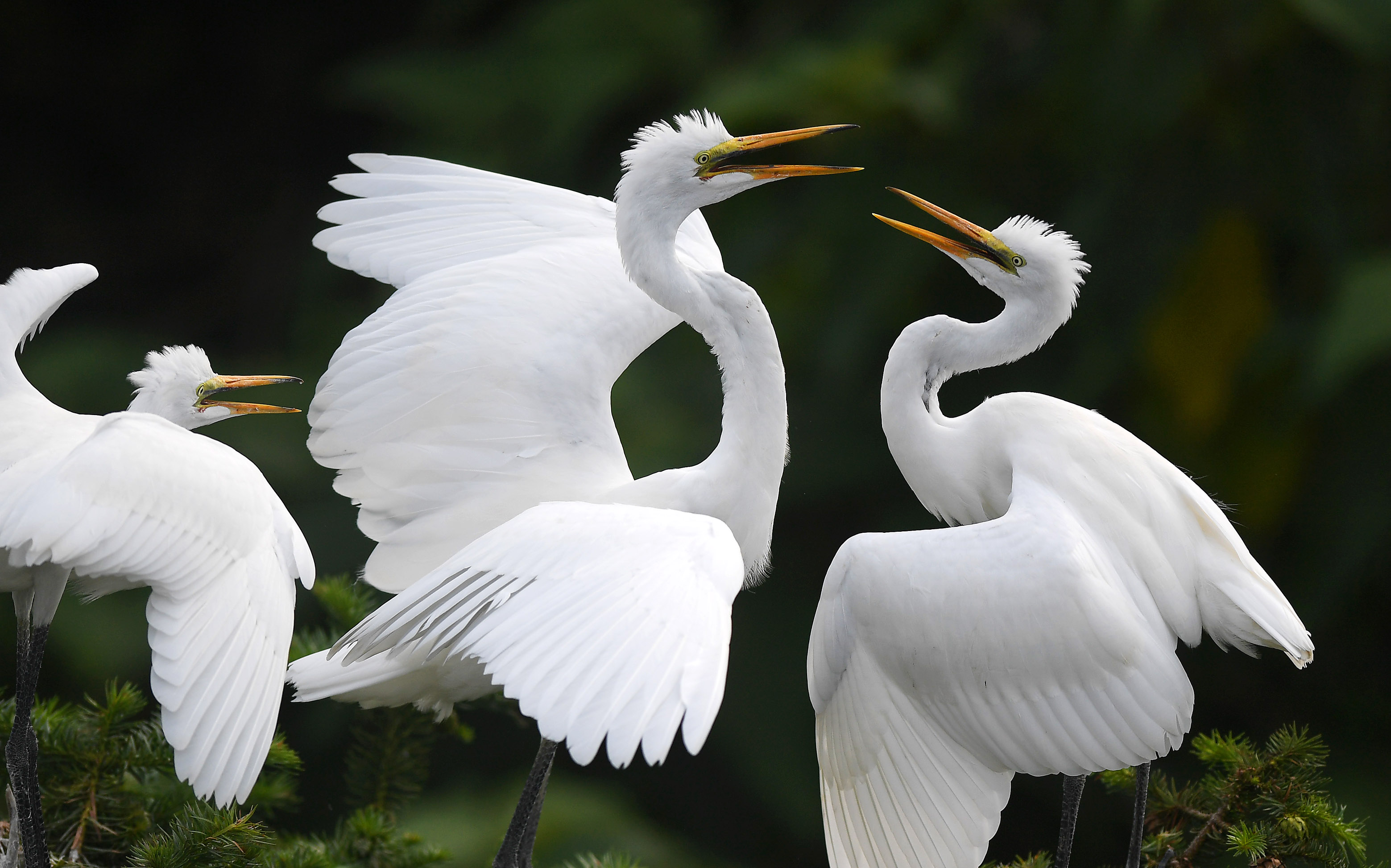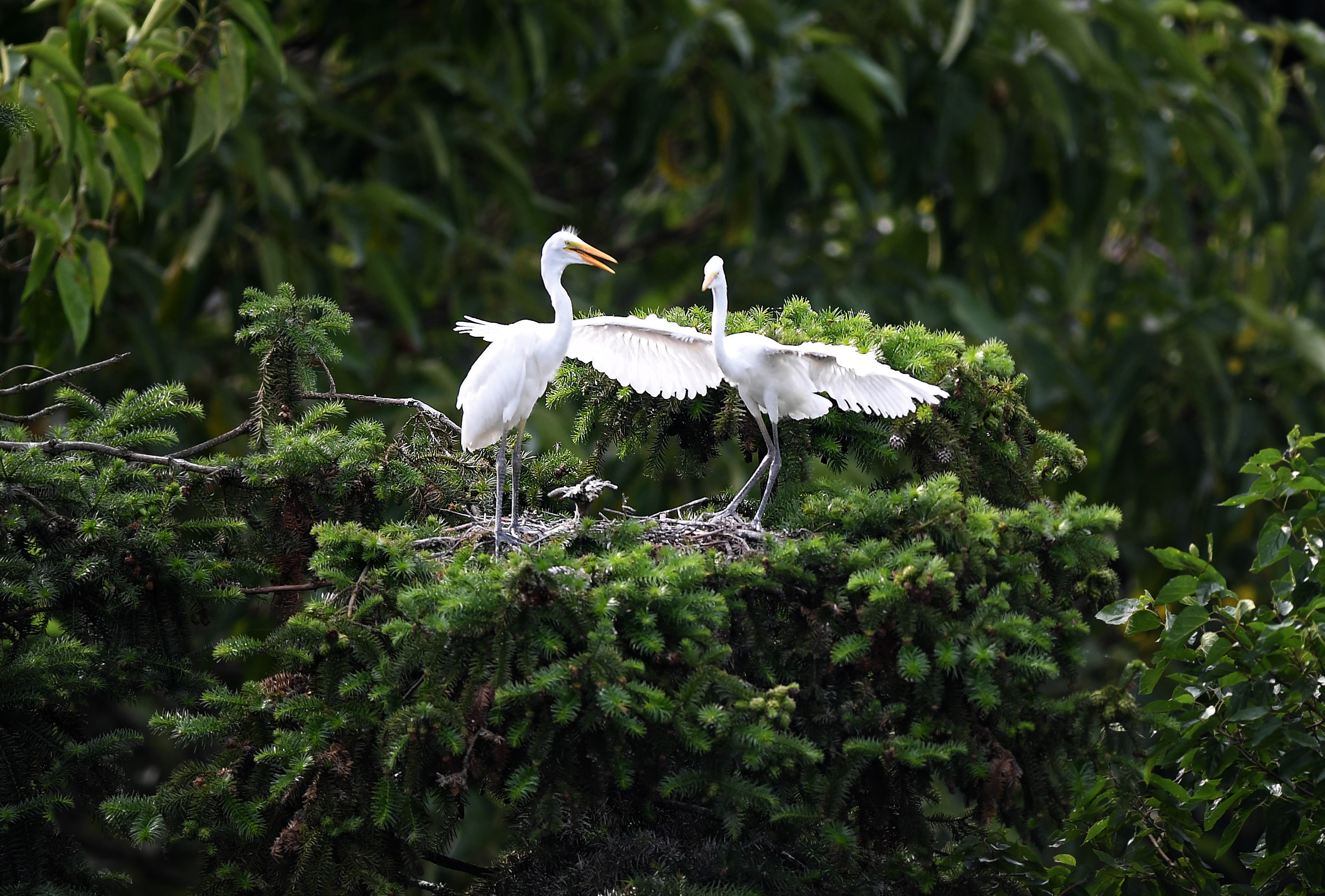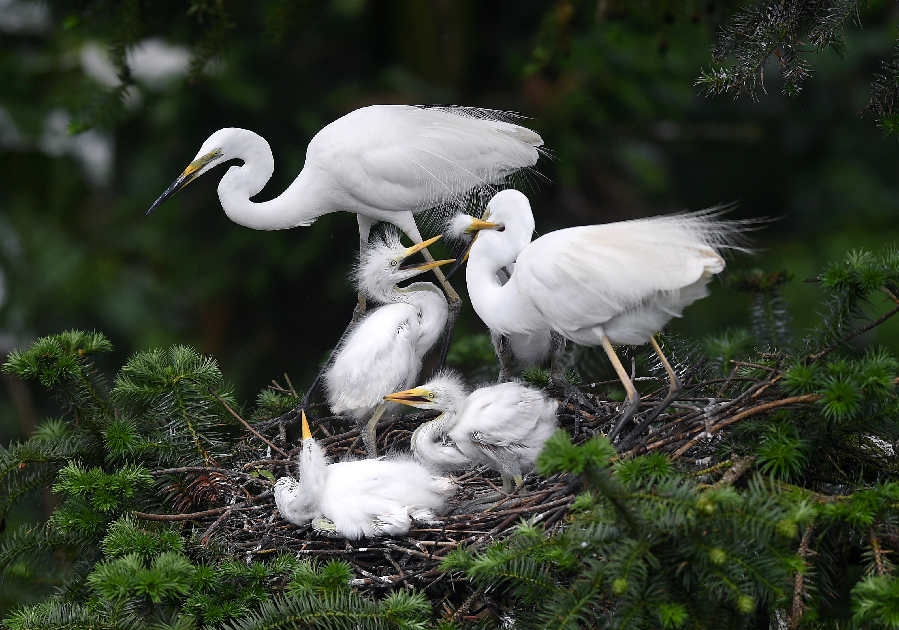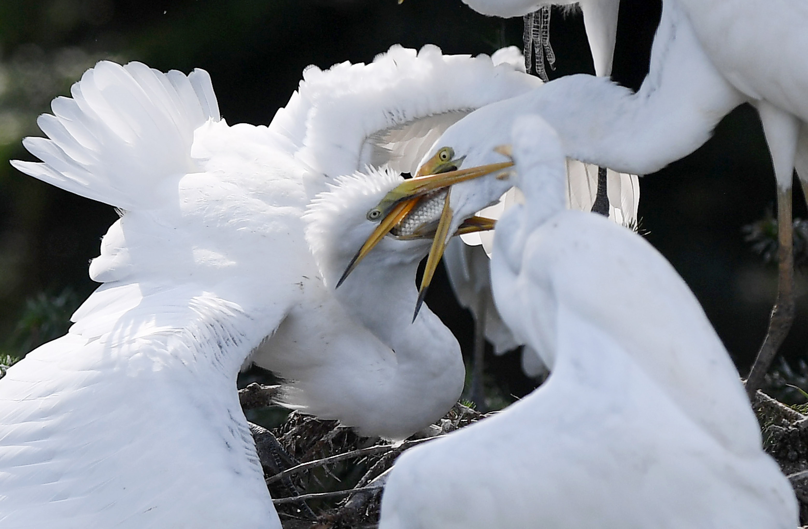 6月17日,几只白鹭幼鸟正在打闹玩耍。